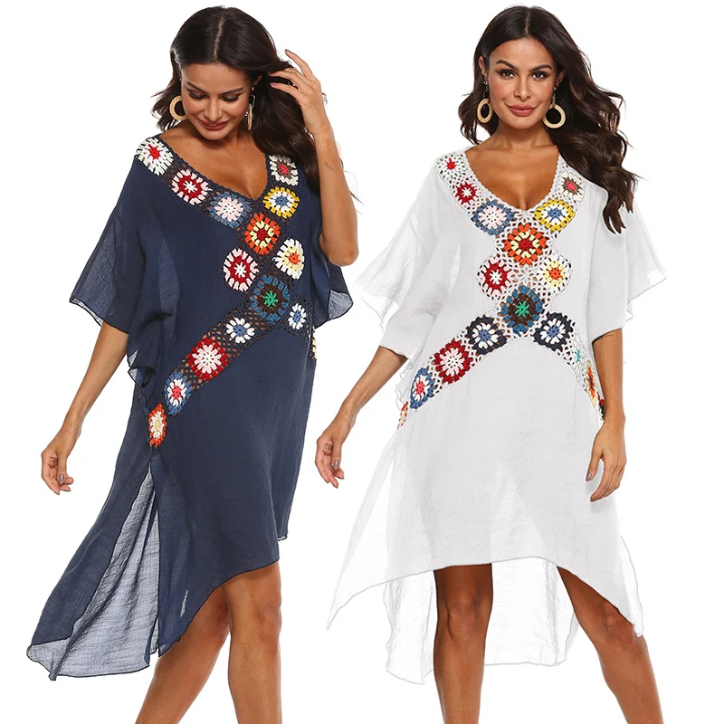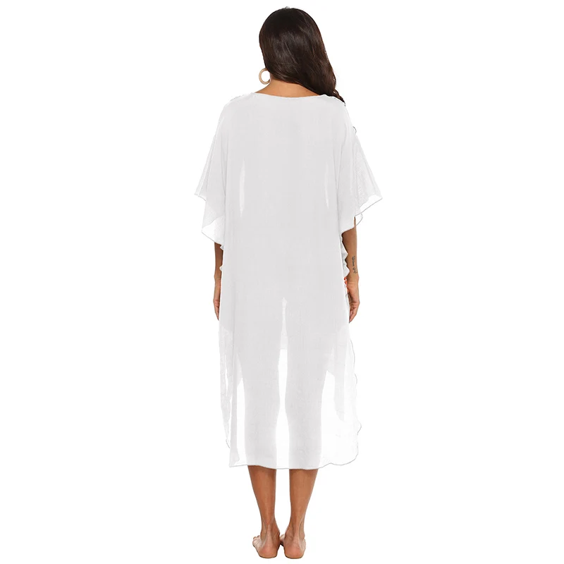 Новинка, накидка для плавания, Пляжная туника, летняя женская пляжная одежда, вязаный крючком купальник в стиле бохо, белый халат, длинное парео, пляжная одежда