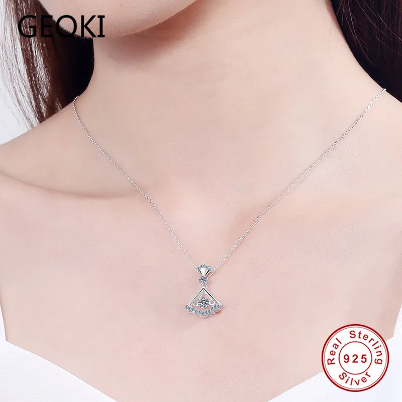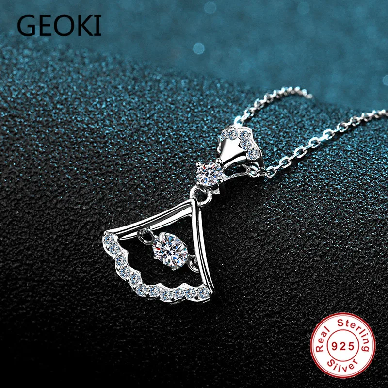 Geoki Perfect Cut 0,3 CT моиссанит прошел испытание алмаза камень кулон платье ожерелье 925 стерлингового серебра Вечерние цепочки ожерелье