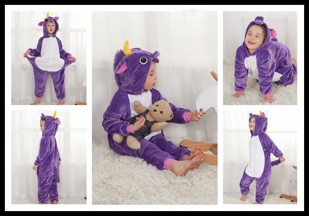 Детские пижамы-кигуруми в виде единорога для детей фланелевые пижам...