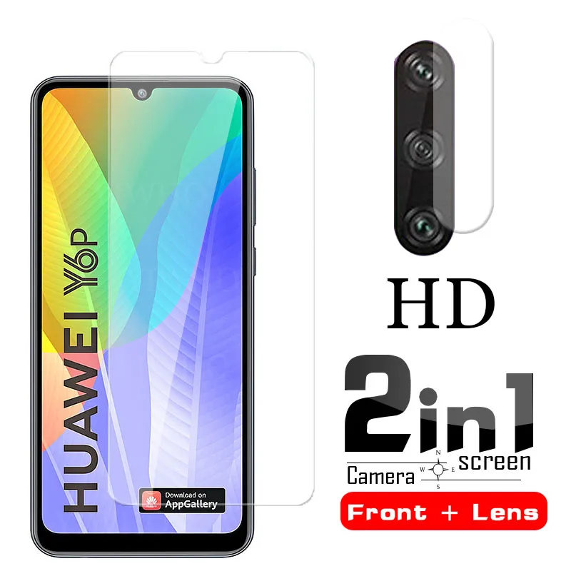 2 в 1 Защитное стекло для Huawei Y6p Защитная пленка для экрана из закаленного стекла для Huwei Y6 Y 6 P MED-LX9 MED-LX9N объектив камеры