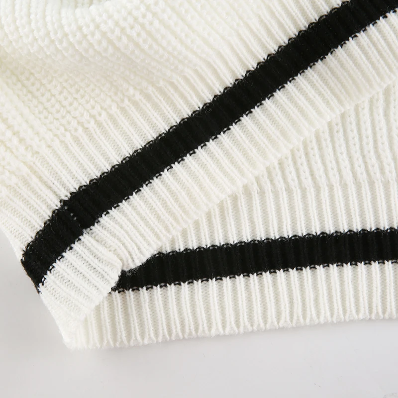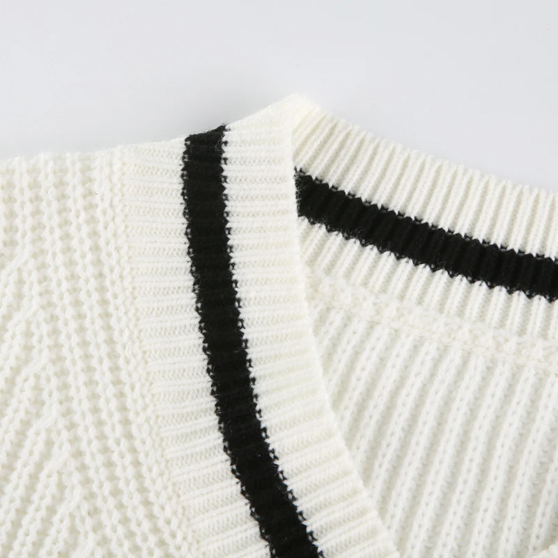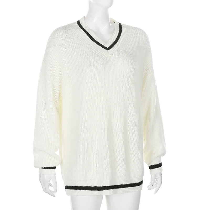 Женский свитер с V-образным вырезом, белый пуловер в стиле преппи, ...