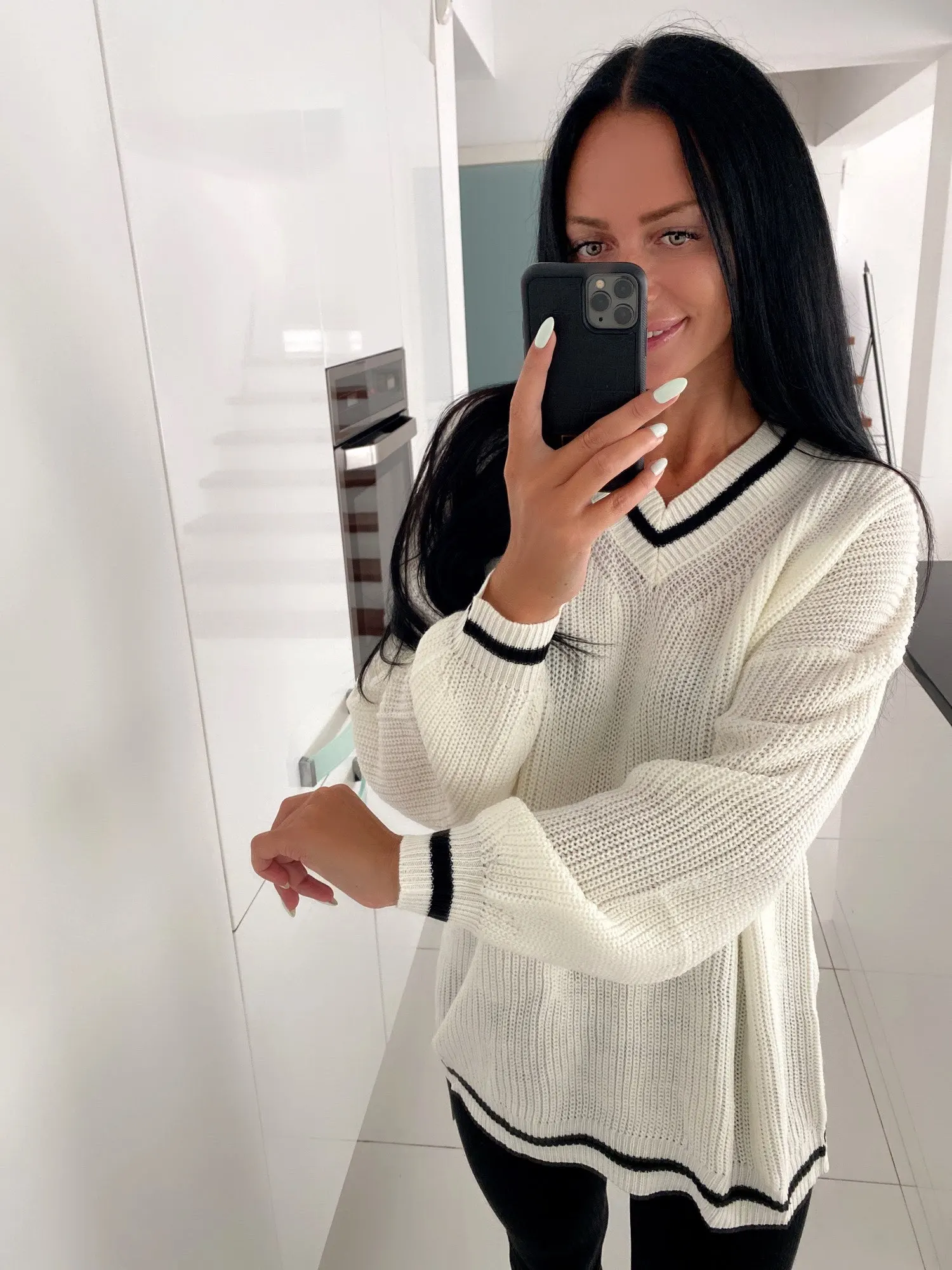 Женский вязаный джемпер в полоску, Белый Свитер оверсайз с длинным ...