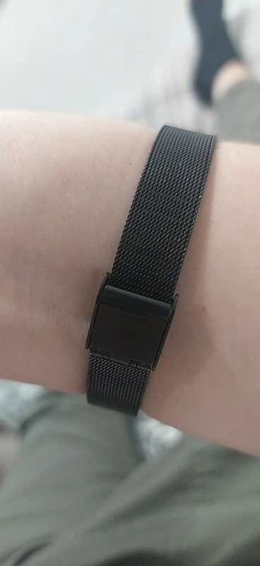 Товар доставлен в Минск быстро, меньше месяца. Ремешок узкий, а сам браслет широкий, смотрится странно, есть отметки где можно закрепить застёжку и вот этим очень плохо, у меня рука ещё меньше чем самая маленькая отметка, браслет немного болтается ( ещё стёрта краска внутри с обоих сторон