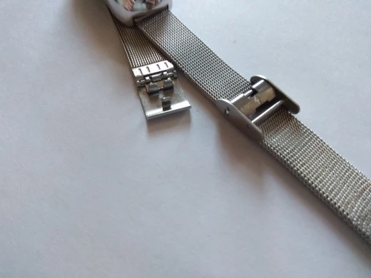За свои деньги ремешок не плохой. Не совсем соответствует описанию, именно у этой модели ремешок уже, чем на картинке. Пришел в целости в специальном противоударном пакете, без царапин. Зафиксировать регулятор на нужном размере удалось с трудом, чем больше размер, тем лучше фиксируется. Застёжка неделю отработала исправно, но потом пришлось подправить пассатижами (не критично), сейчас все нормально. Для маленькой руки не подойдут, так как регулятор фиксируется на определенные уздечке. Часы в ремешке зафиксировались на отлично, боюсь, что когда возникнет необходимость заменить ремешок, их в процессе замены модно сломать. А так ремешок смотрится стильно, аккуратно.