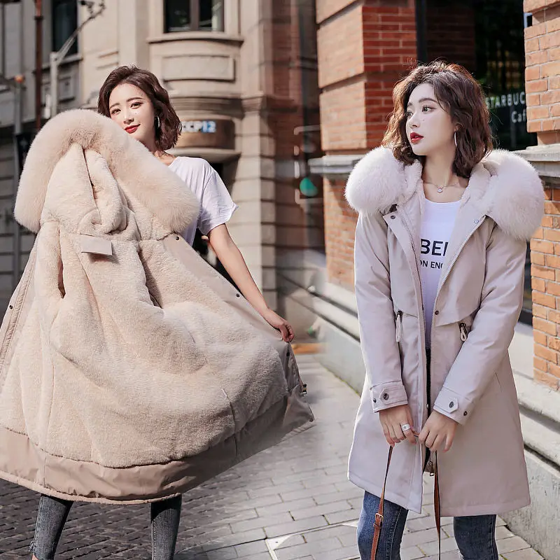 Зимняя куртка из овечьей шерсти меховой подкладкой Теплая Куртка парка Женское пальто и куртка размера плюс 6XL Парка женская зимняя куртка женские Теплый пуховик, парки