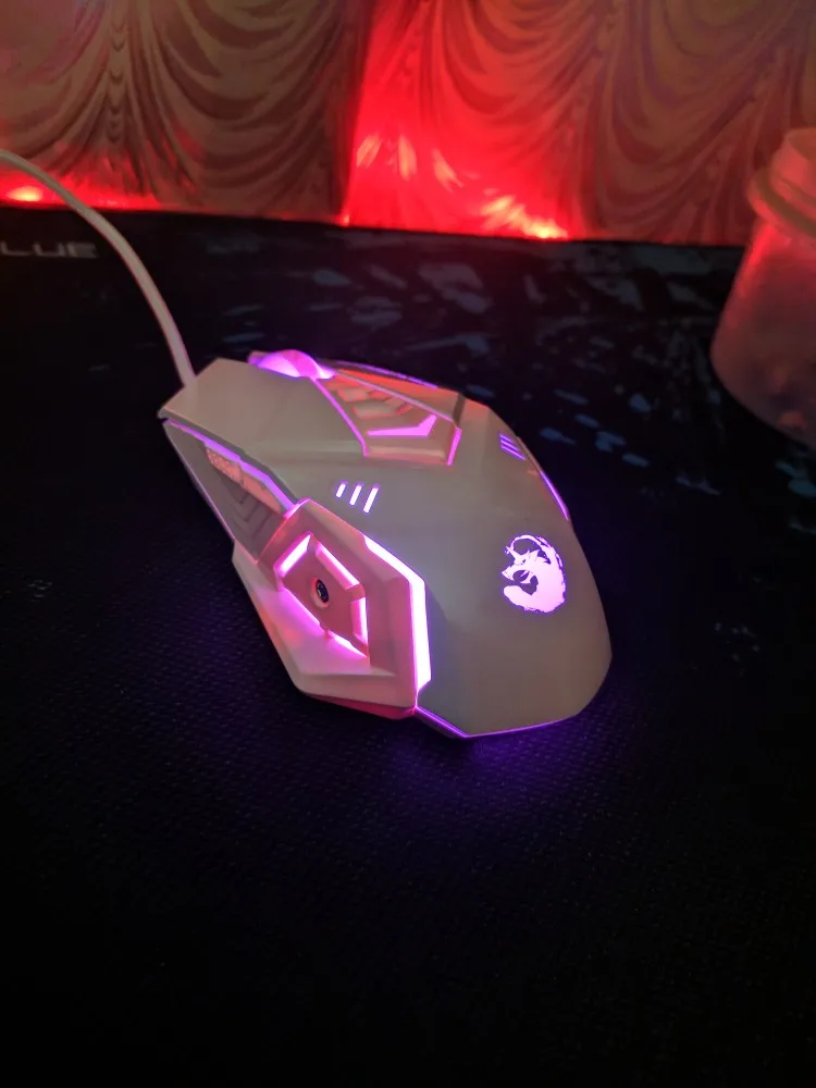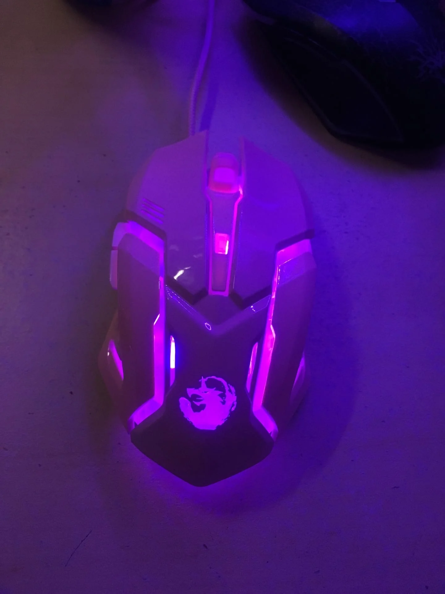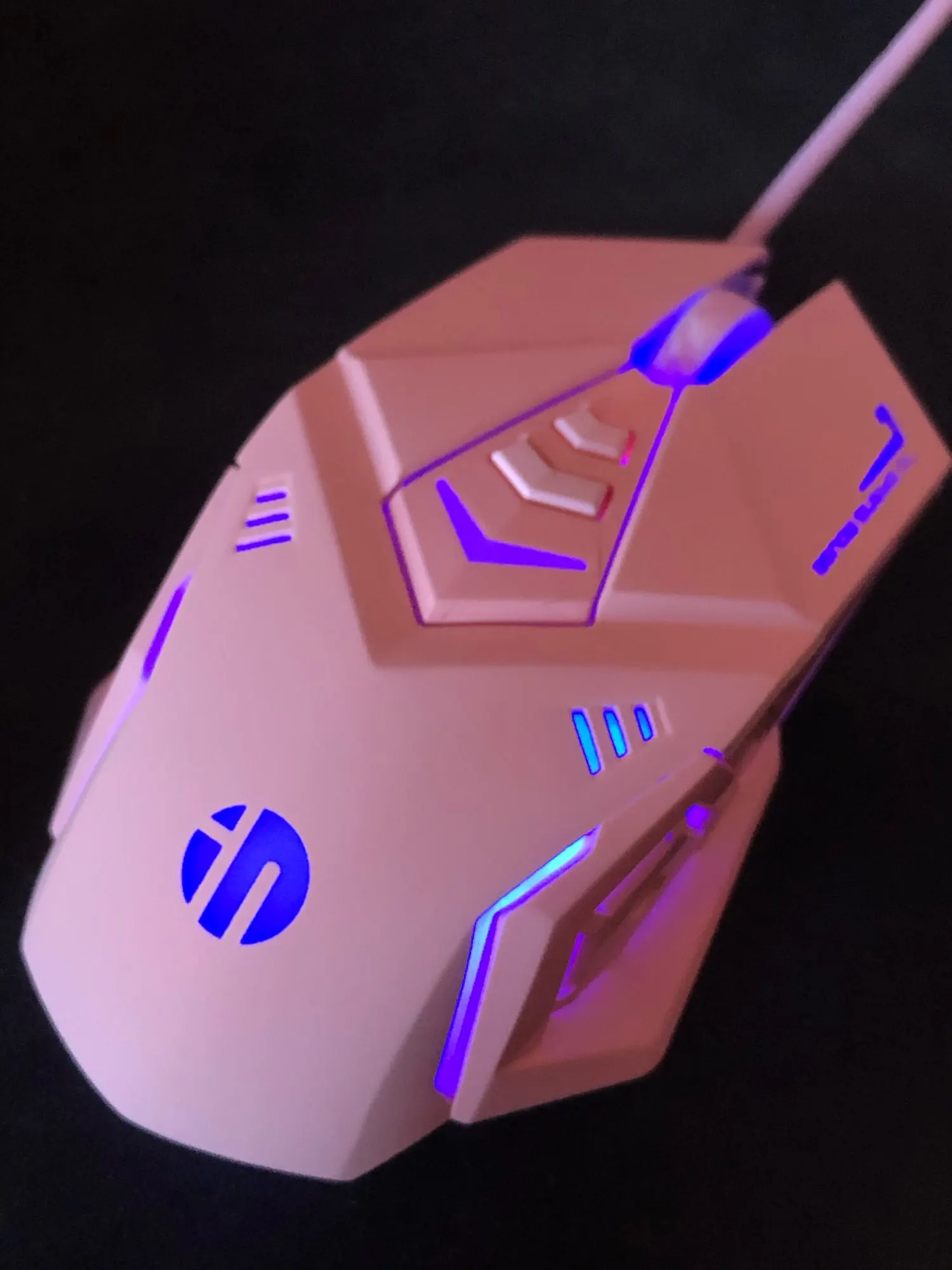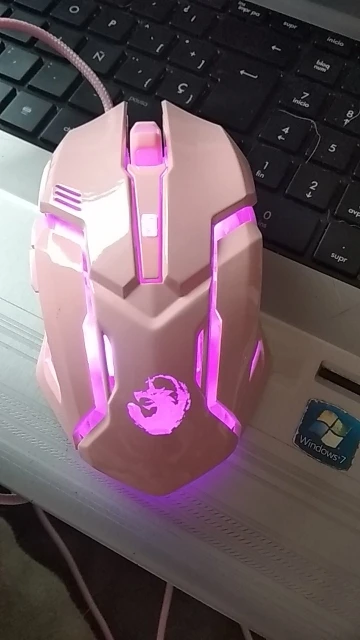 Tuve malas perspectivas con este ratón pero al llegar me quedé bastante sorprendida ya que el color mate es perfecto, no tiene quitado nada de ello, tiene unos leds rosa, rojos, azul y lila y se puede ajustar, eso va perfecto para cuando estas jugando y no quieres marearte con las luces, las puedes bajar la intensidad. Lo recomiendo, me encantó.