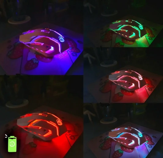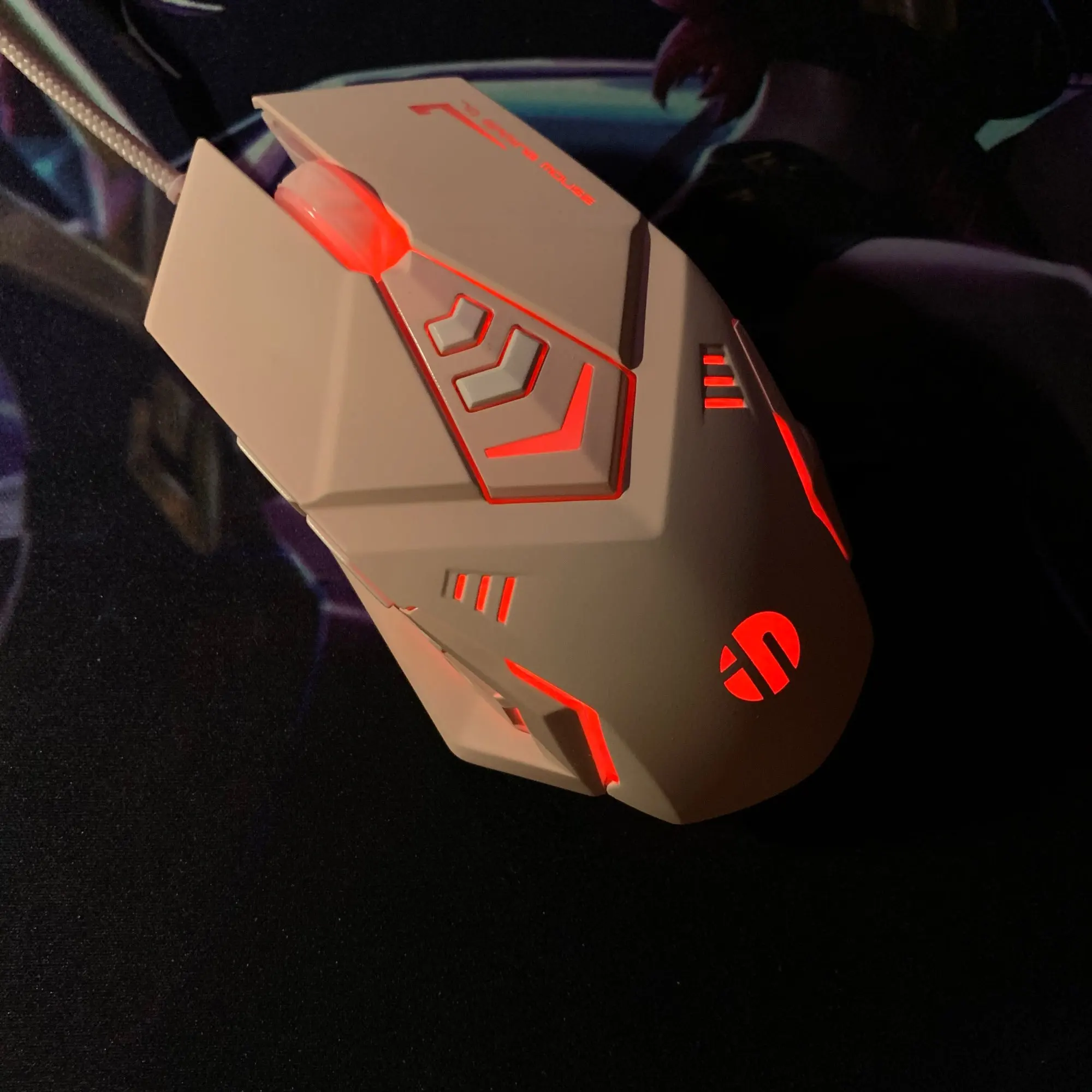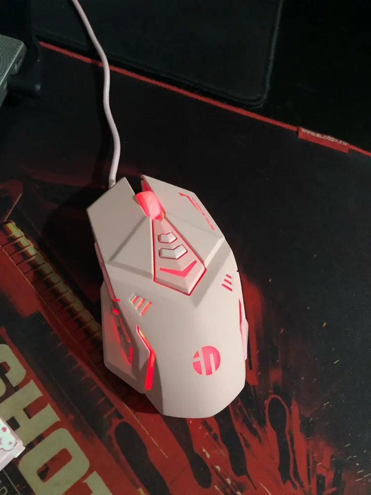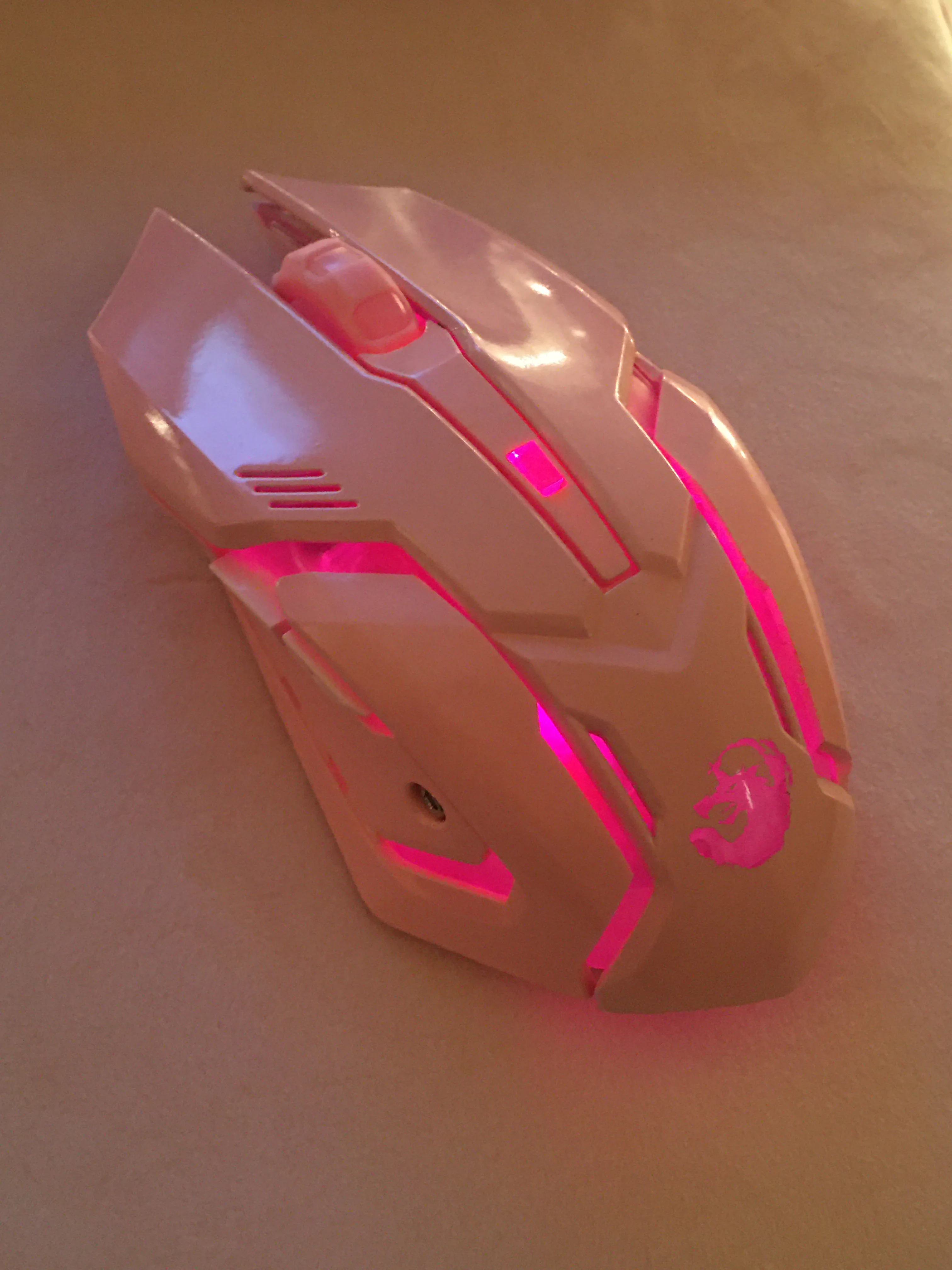 Tuve malas perspectivas con este ratón pero al llegar me quedé bastante sorprendida ya que el color mate es perfecto, no tiene quitado nada de ello, tiene unos leds rosa, rojos, azul y lila y se puede ajustar, eso va perfecto para cuando estas jugando y no quieres marearte con las luces, las puedes bajar la intensidad. Lo recomiendo, me encantó.