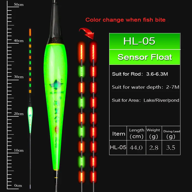 Поплавок для рыбалки HLJFISHING, Электрический поплавок с датчиком силы тяжести, со встроенной IC антенной, со светодиодной подсветкой