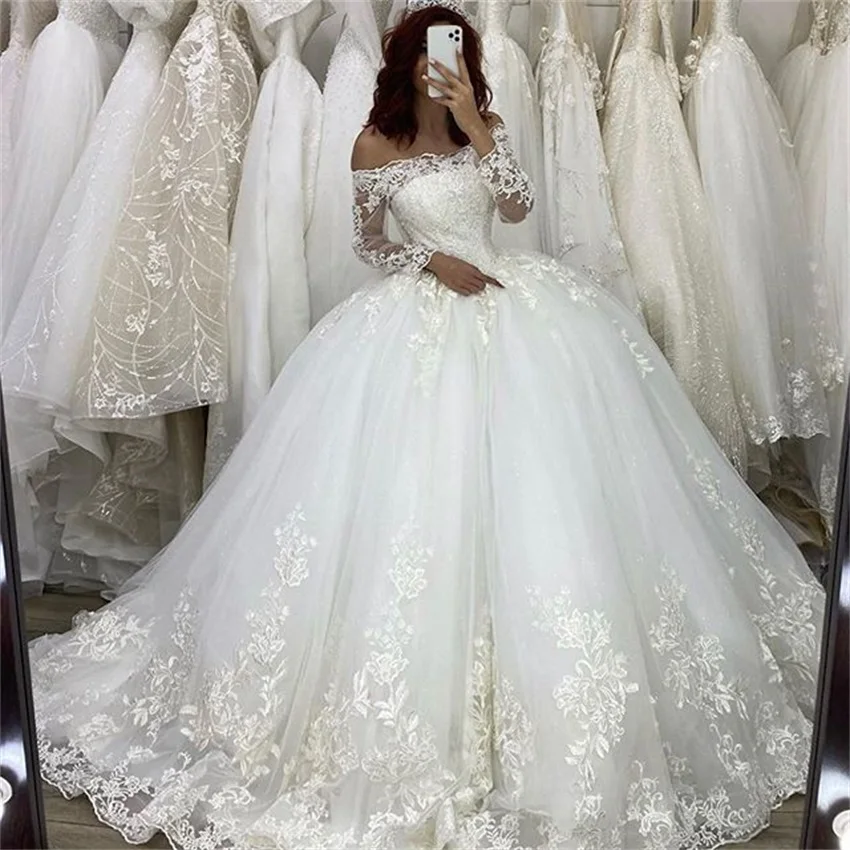 Великолепное бальное платье Дубай принцесса, свадебные платья 2020, кружевные свадебные платья с длинным рукавом и аппликацией, свадебное платье