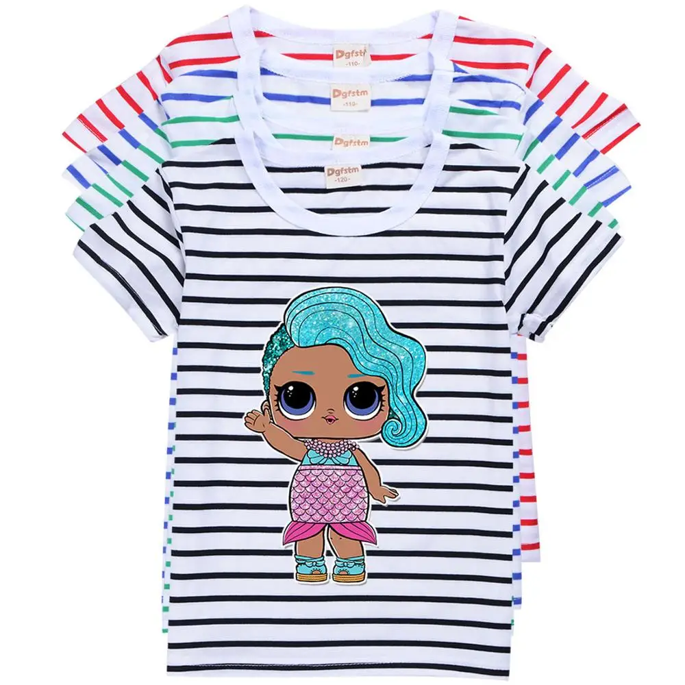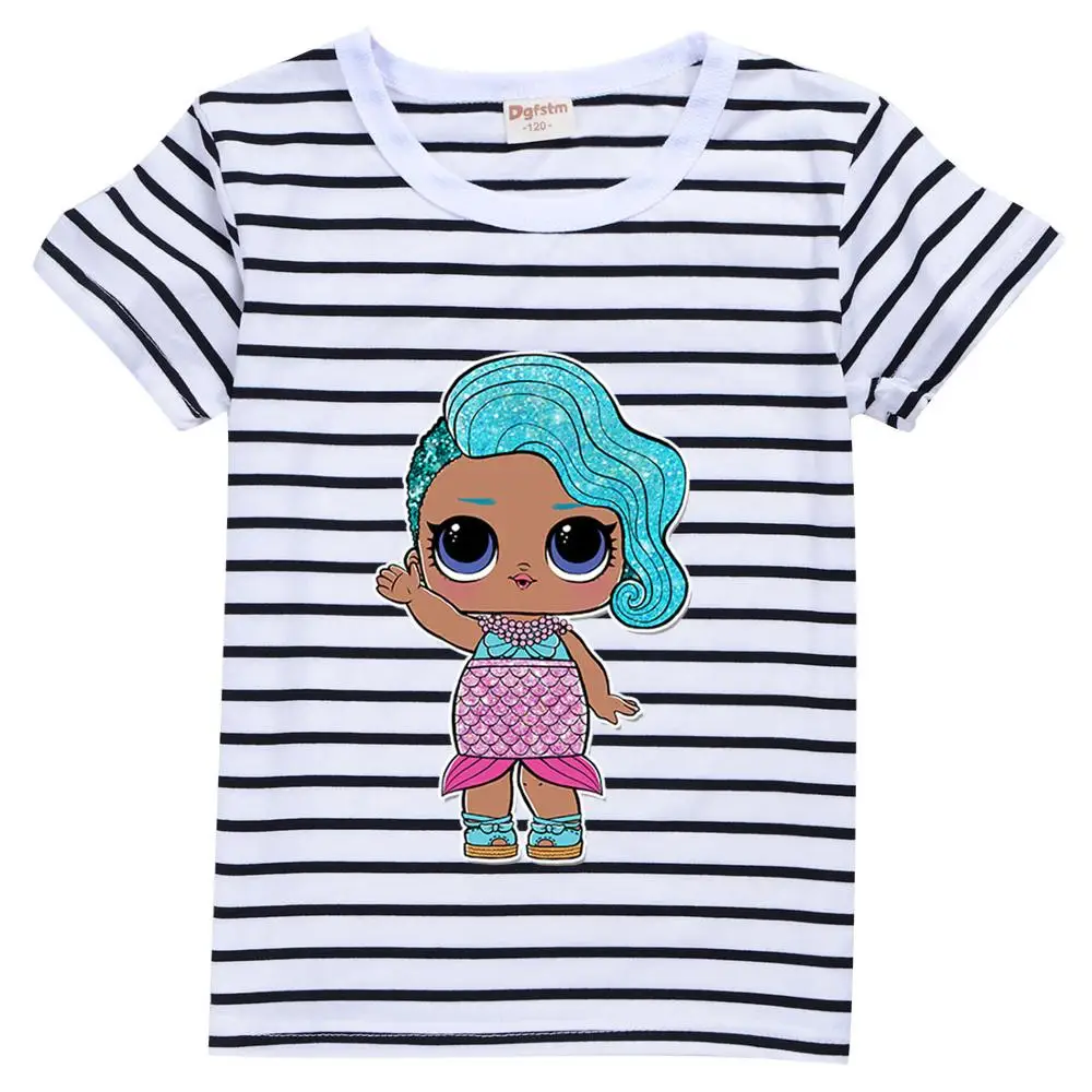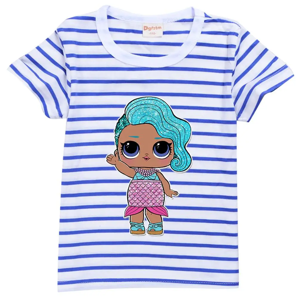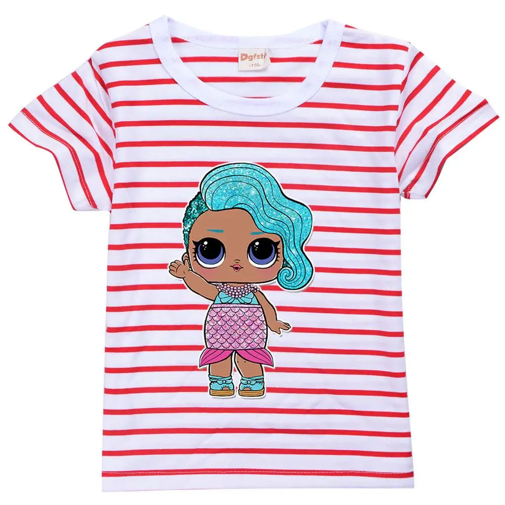 LOL Surprise DollЛетняя Милая хлопковая футболка в полоску для девочек Детская Домашняя футболка в полоску топы, футболки, одежда