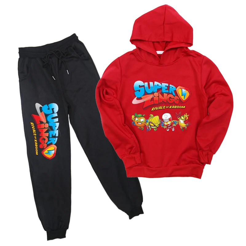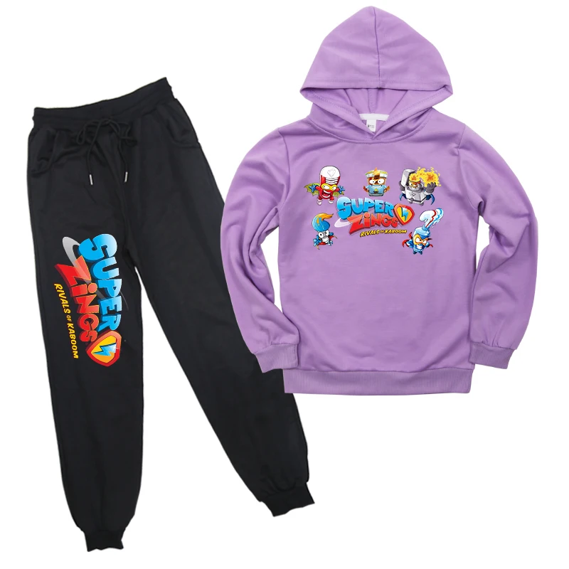 De супер Zings 4 Принт Superzings детские для мальчиков и девочек, состоящие из кофты с капюшоном и штанов, костюм с кофтой 2 шт.компл. для бега Штаны комплект детской одежды, одежда