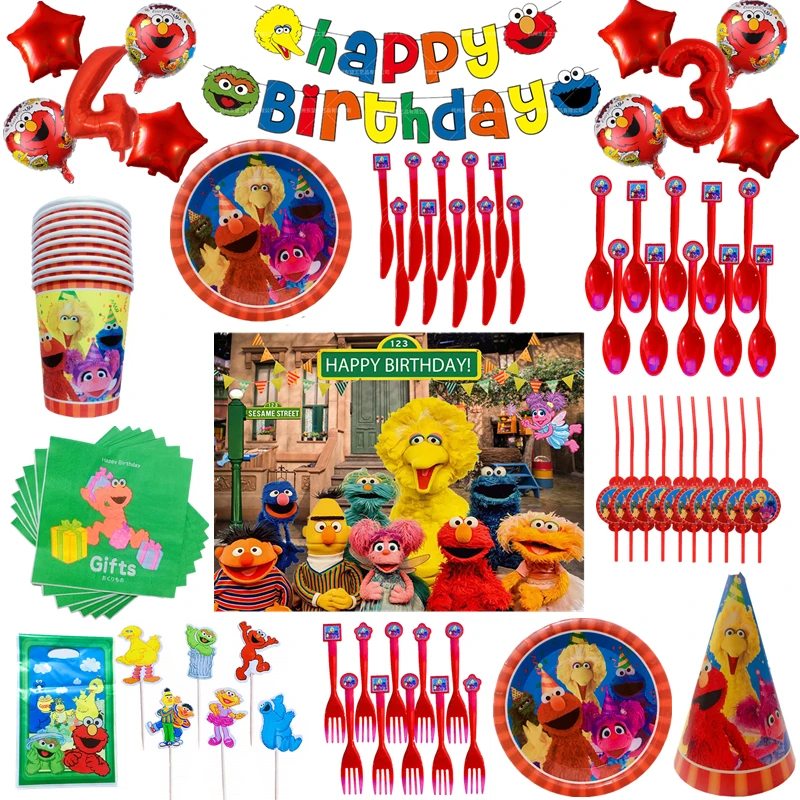 Улица Сезам принадлежности для дня рождения набор посуды скатерть бумажные салфетки под чашки баннер торт Топпер детские украшения для душа