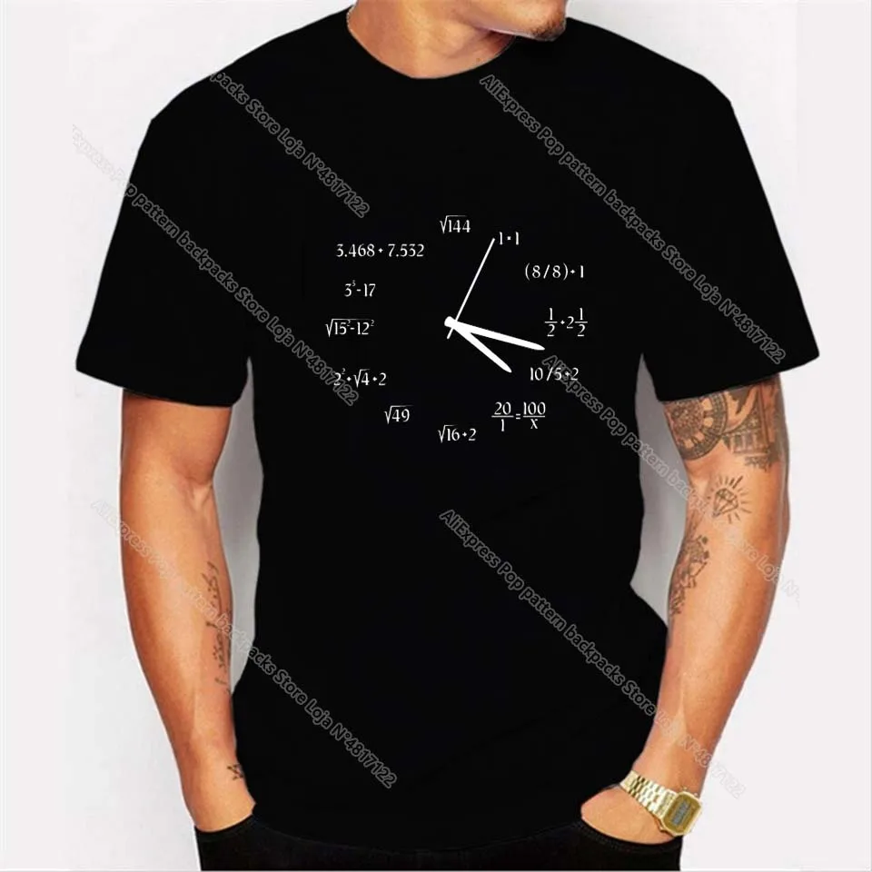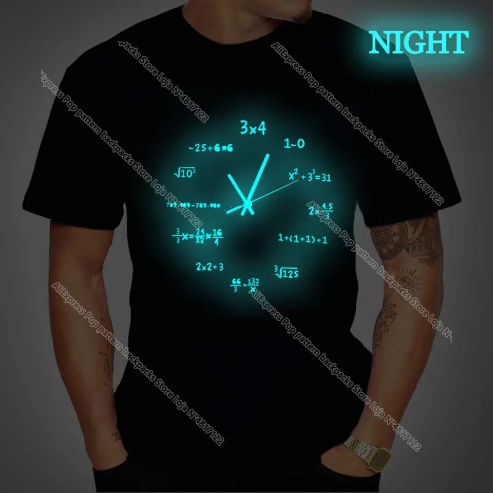 Летняя мужская светящаяся Футболка с принтом Математические часы, модная забавная футболка с графикой, Хлопковая мужская футболка, Топы, подарок, Mujer Hombre Camiseta