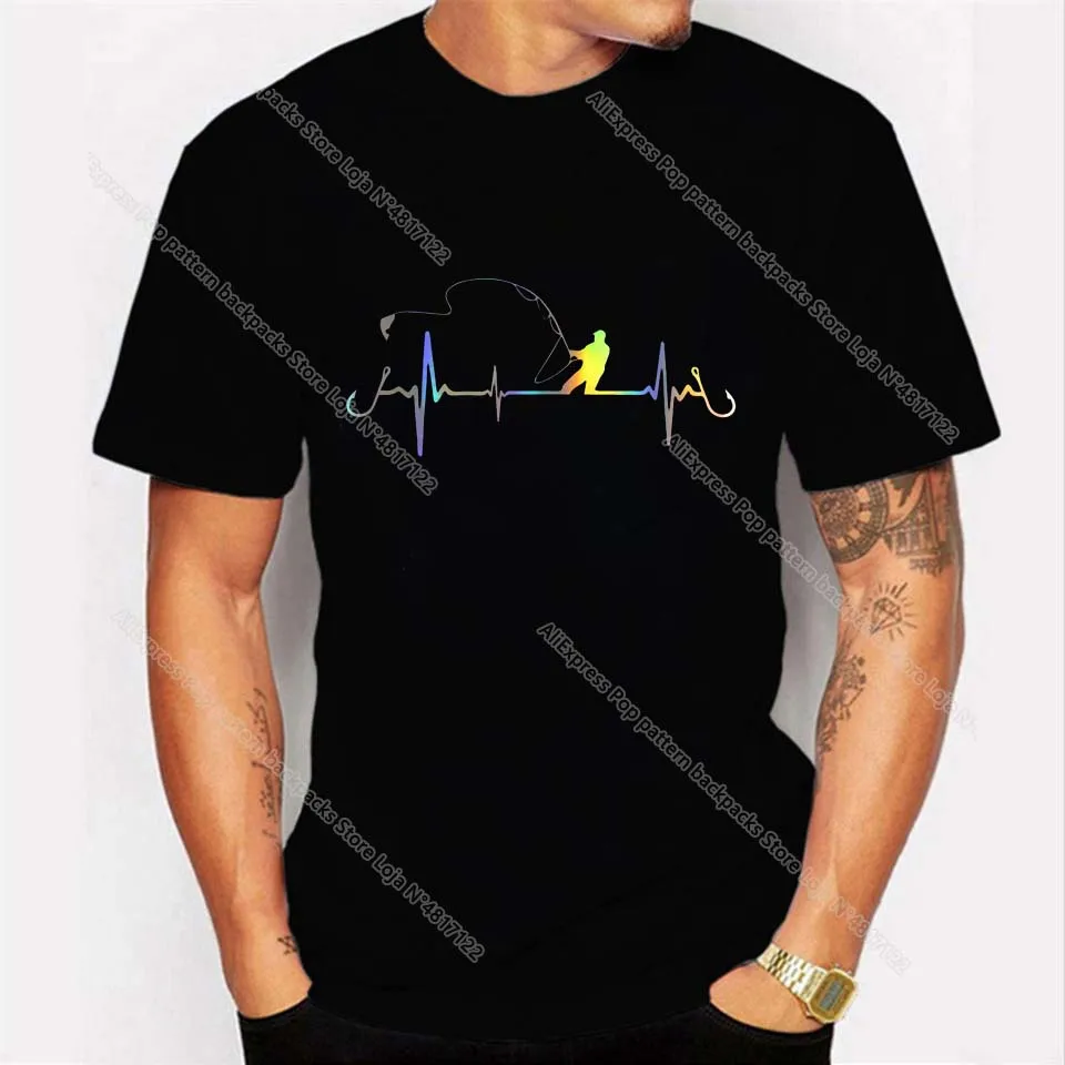 Забавная футболка для рыбалки с рисунком сердцебиения, Хлопковая мужская Винтажная футболка с графическим рисунком для женщин и мужчин, новинка, уличная одежда, женская одежда для мужчин
