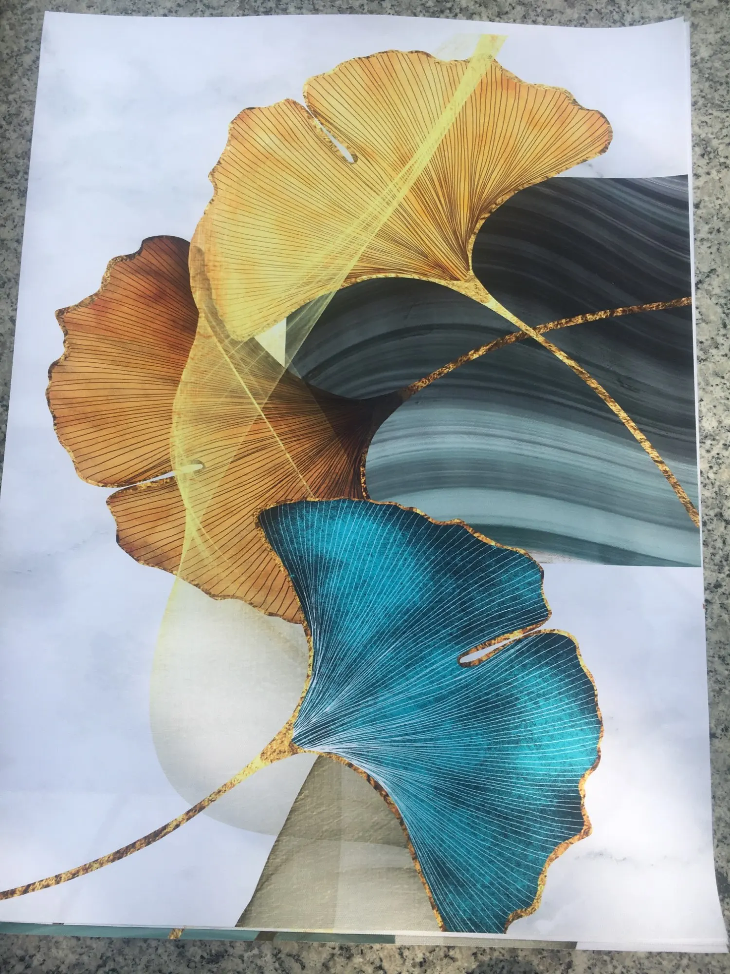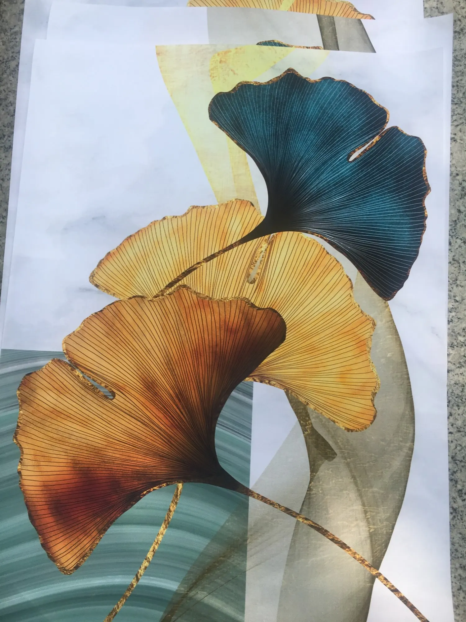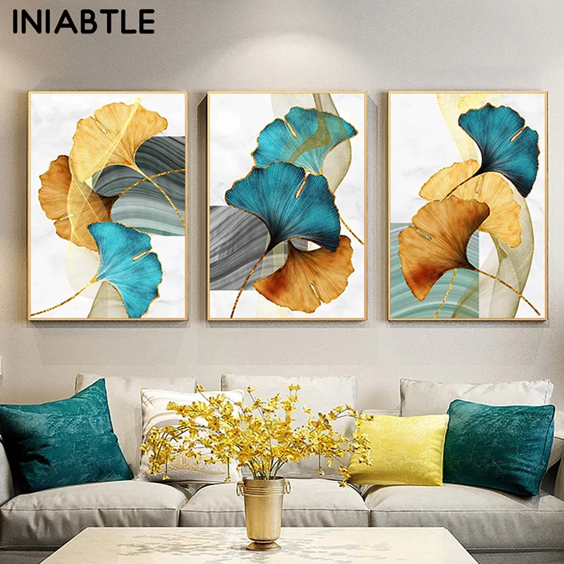Синий, зеленый, желтый, золотой лист, растение, цветок, холст, постер, абстрактная живопись, настенное искусство, принт, скандинавские современные фотографии, декор для гостиной