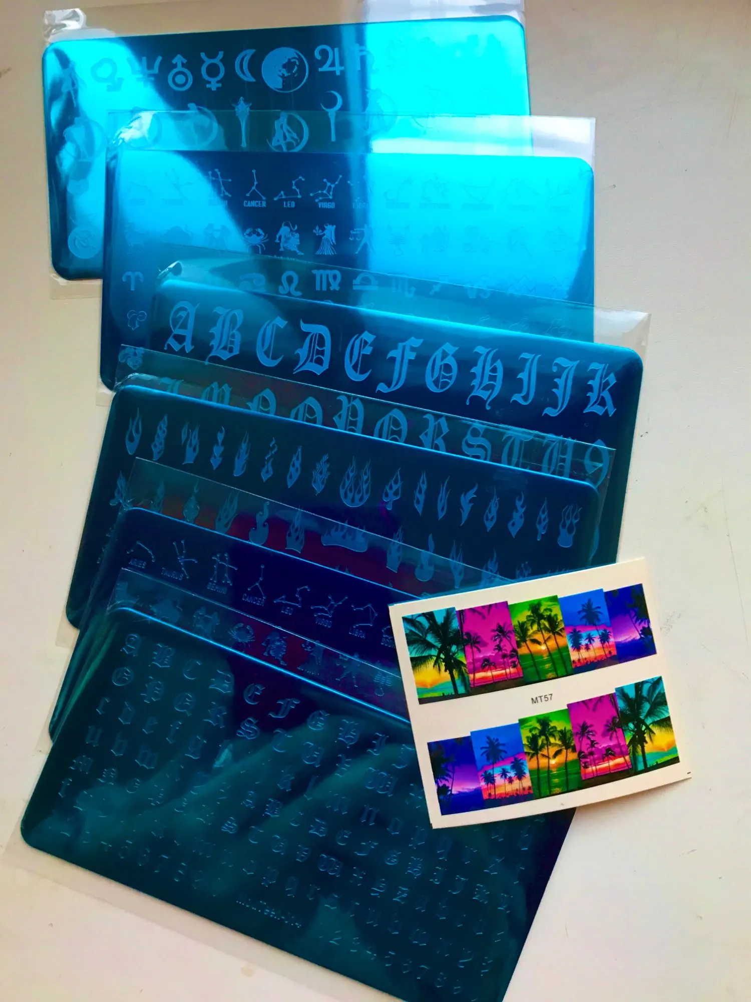 Мне нравится эта тарелка? Он имеет четыре разных способа штамповки каждого знака зодиака, так что вы можете использовать один или более для каждого ногтя. Пластина также легко очищается. Очень рад! Я использовал штамп на ноготь слева.