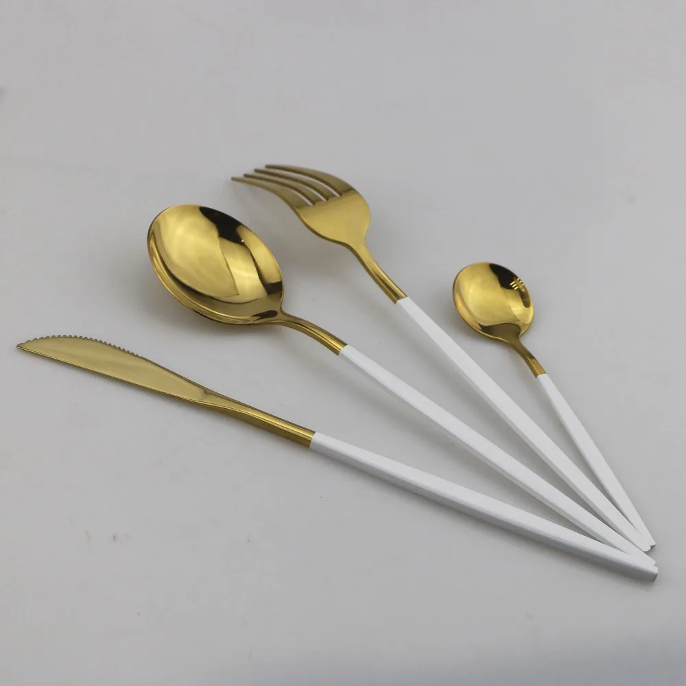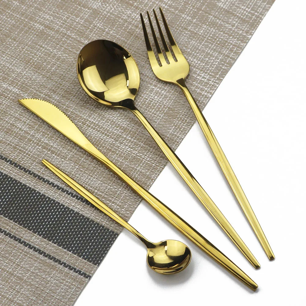 Набор позолоченных столовых приборов, набор из 24 предметов, обеденная ложка, вилка и нержавеющая сталь, подарочная коробка