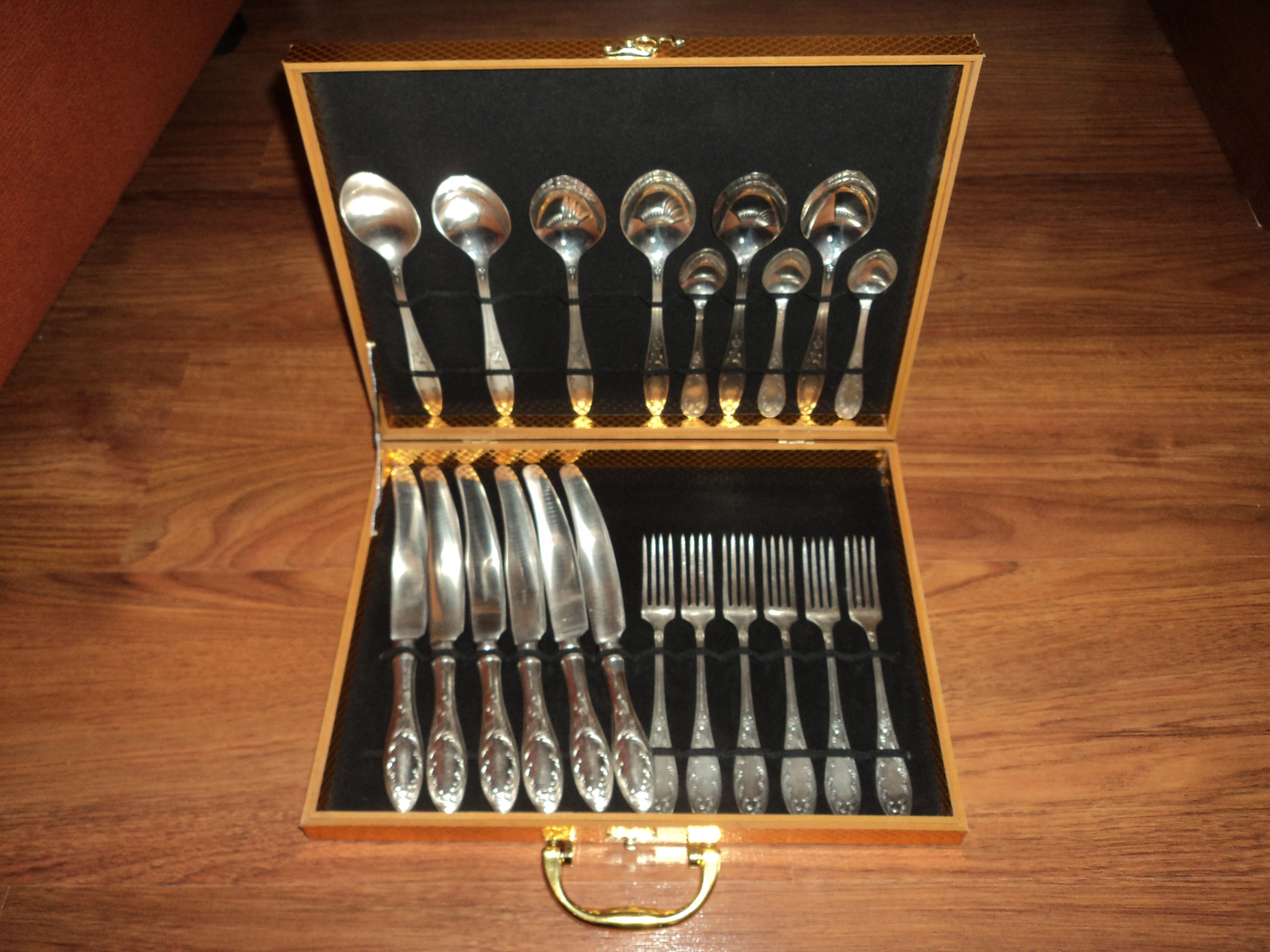 Описание продукции:1. Пожалуйста, закажите количество, которое вам нужно, 1 комплект для 6 пользователей, 4 комплекта для 24 пользователей, покупайте больше, экономьте больше2. Всего 24 штуки в наборе, 6 ножей + 6 ложек + 6 вилок + 6 чайных ложек-это набор для шести пользователей.3. Высокое качество304 (18/10) материал из нержавеющей стали для более длительного использования.4. Длина и Вес набора столовых приборов: нож (220 мм + 40 г)/ложка (215 мм + 40 г)/вилка (220 мм + 30 г)/Чайная ложка (125 мм + 10 г)Примечание:1. Купите более 4 комплектов, мы отправим черезDHL(Только США и большинство европейских стран)3-5Рабочий день!2. Для того, чтобы предложить лучшую цену, посылка безопасна только для образцов, посылка не включает в себя подарочную коробку3. Вы можете связаться с нами заранее для получения дополнительной пользовательской модели