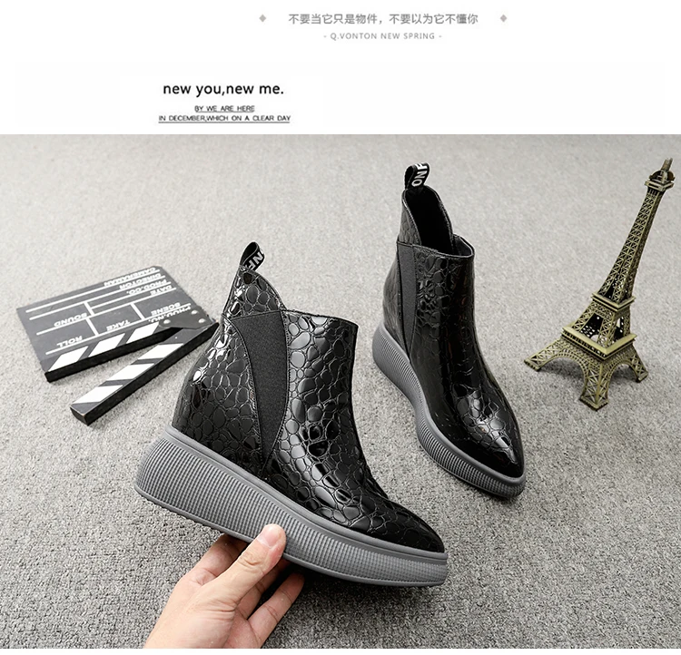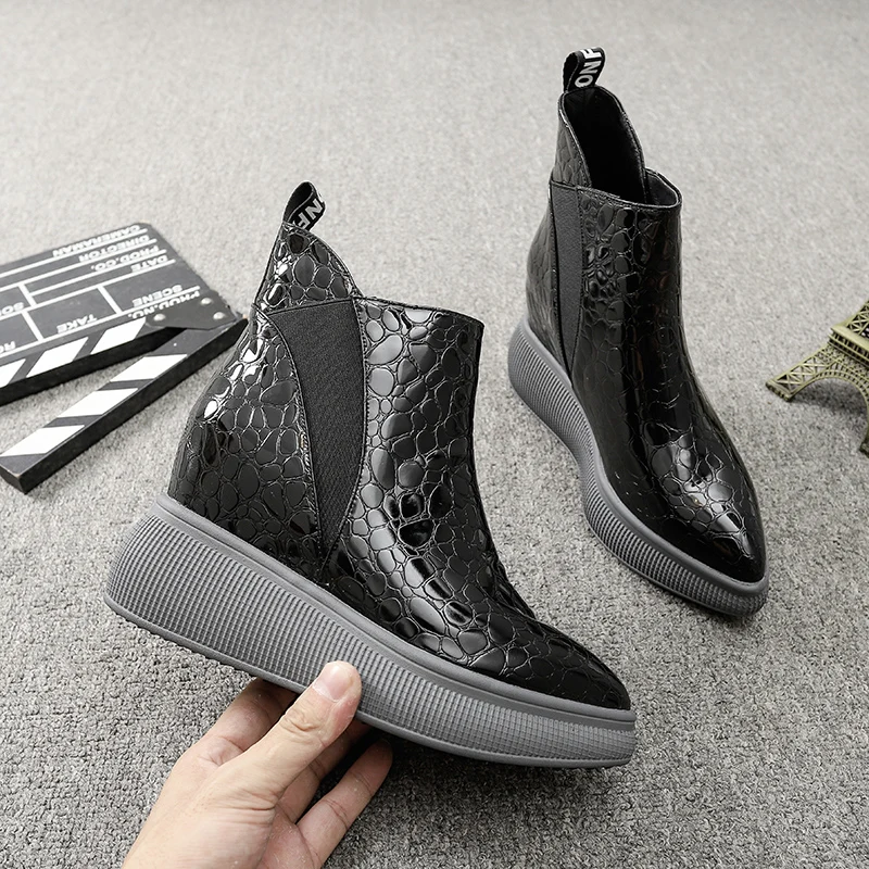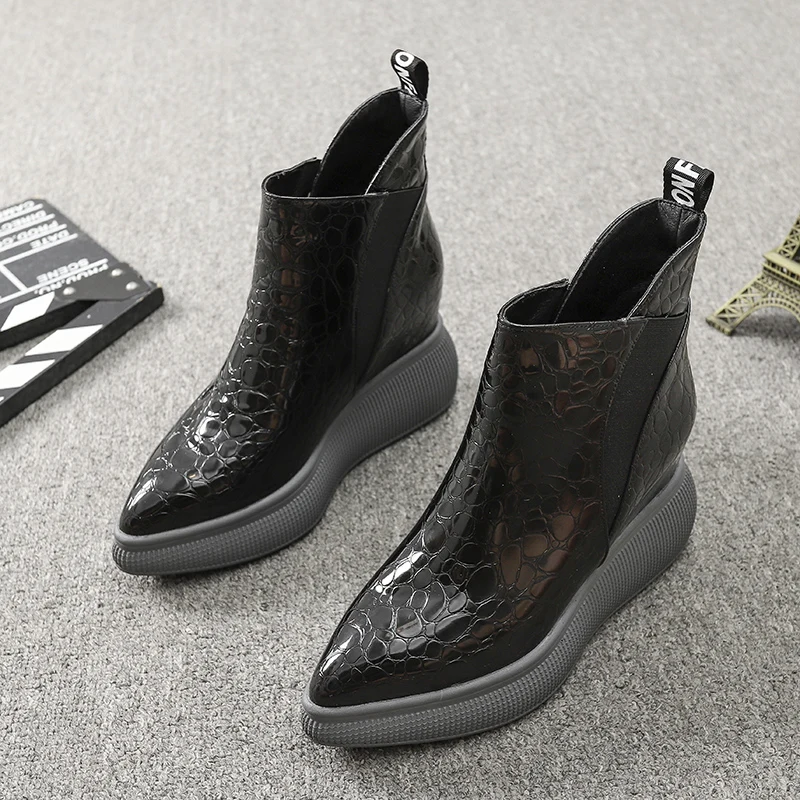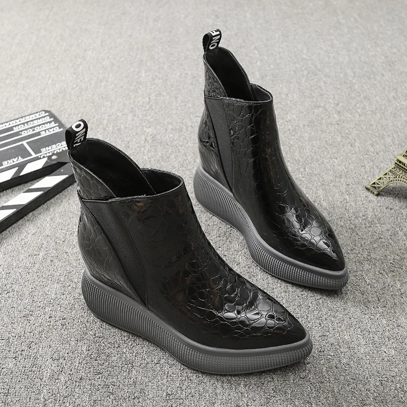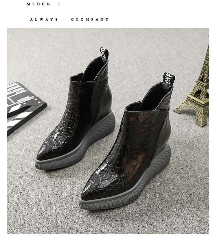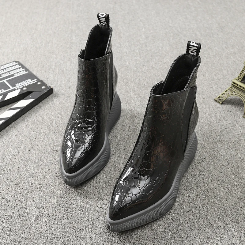 Ботильоны женские из лакированной кожи Koovan, зимние ботинки с острым носком, увеличивающие рост, с хлопковой подкладкой, 2021