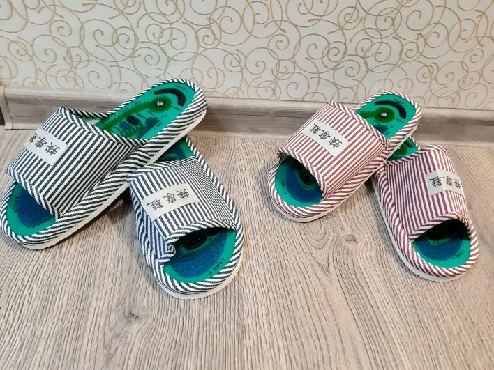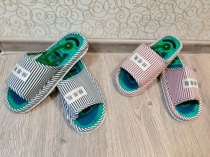 тапки огонь,не знаю,как другие,но реально больно ходить, надо привыкнуть,чуть походила,сняла,все точки на ногах до сих пор массажируются,не на постоянную носку,только как лечение,продавец идёт на контакт, заказала 19марта,получила 8 мая,тапки качественно сделаны,на совесть,добротные, положили 6 магнитиков, однозначно советую