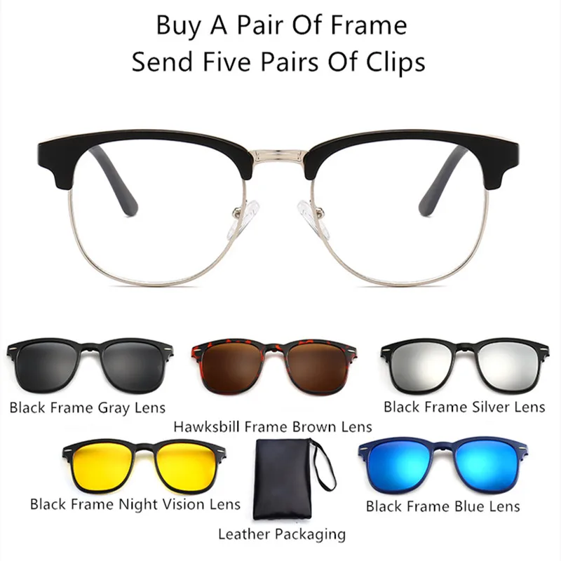 OEYEYEO новые мужские модные простые оправы для очков от близорукости из сплава для женщин 6 в 1 магнитные солнцезащитные очки с зажимом 2218A