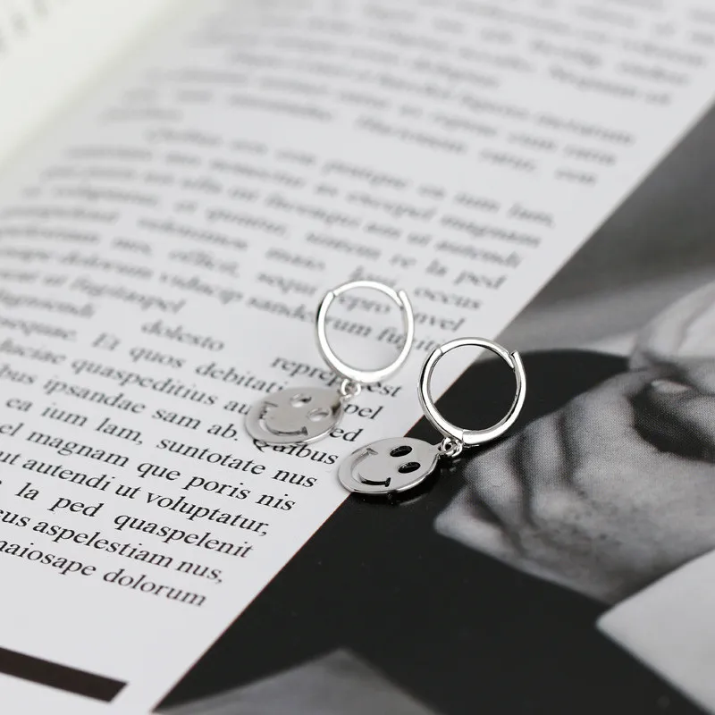 Серьги-подвески со смайликом на удачу из настоящего серебра 925 пробы
