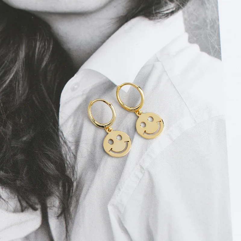Женские серьги из серебра 925 пробы, с круглым улыбающимся лицом