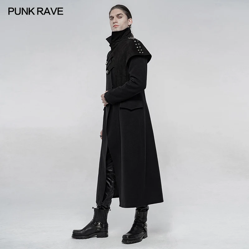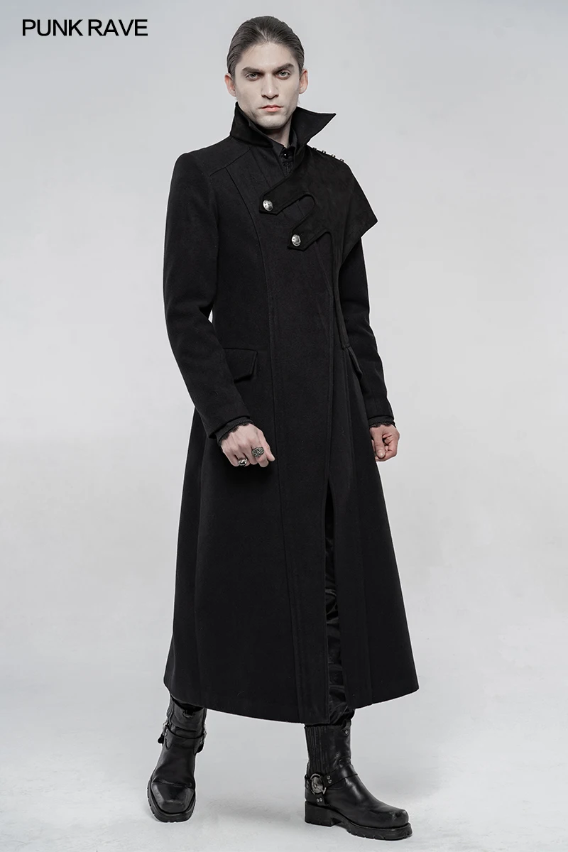Панк RAVE Мужская военная форма асимметричное шерстяное длинное пальто панк зимняя теплая Толстая Красивая длинная куртка пальто для мужчин