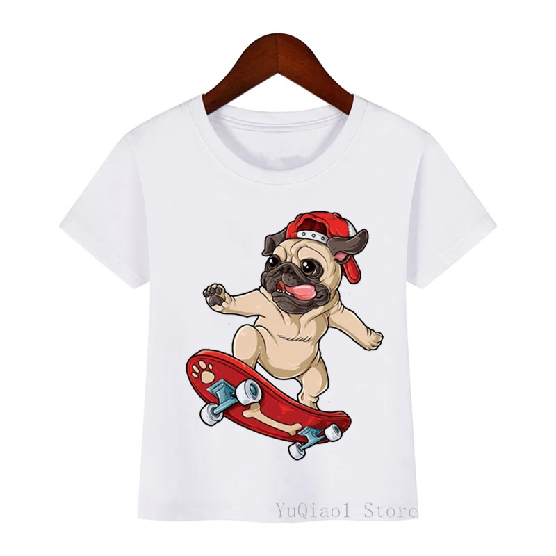 Забавная футболка для девочек и мальчиков, крутая футболка с принтом мопса, роликов, животных, кавайная детская одежда, футболка для любителей собак и мальчиков