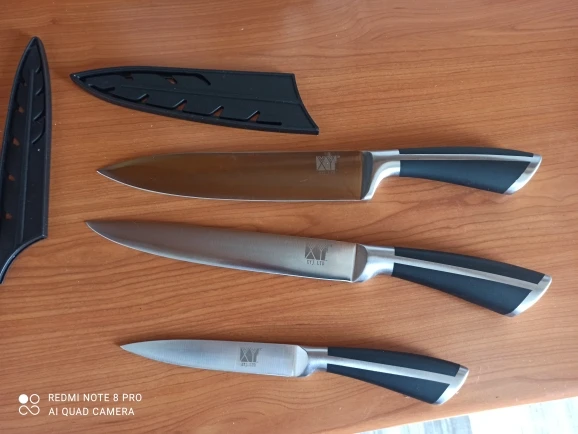 Ножи очень понравились, сделаны очень качественно, но так как заказывал в подпитии, по получении понял - они реально большие, у меня такие (шеф-нож) уже есть, мне бы набор ножей покороче. Первый раз с Али пришло что то, что превзошло мои ожидания!