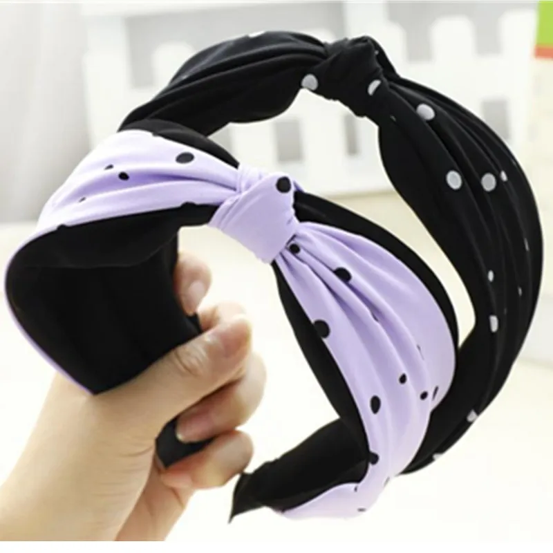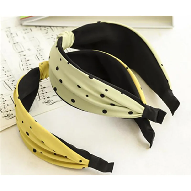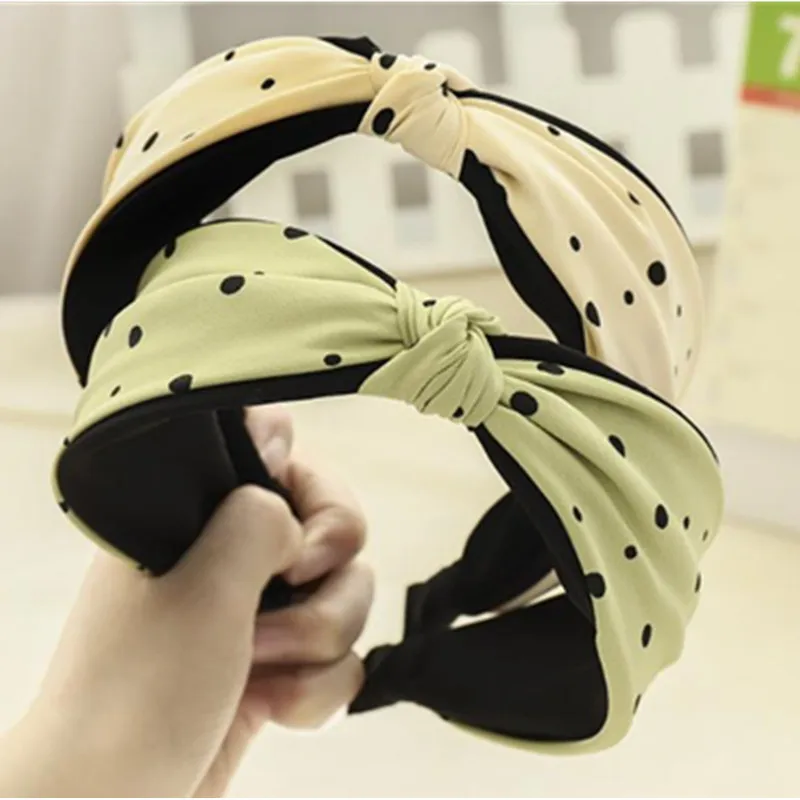 Повязка для волос женская с узлом, широкий ободок в горошек, аксессуар для волос в Корейском стиле, для улицы, для взрослых
