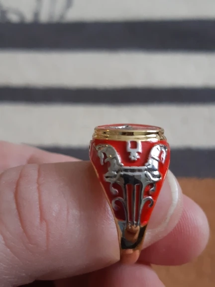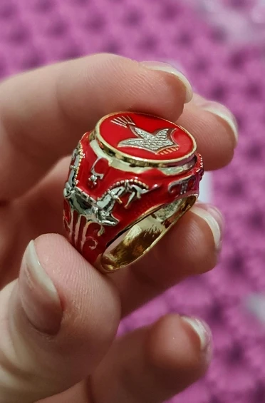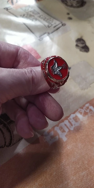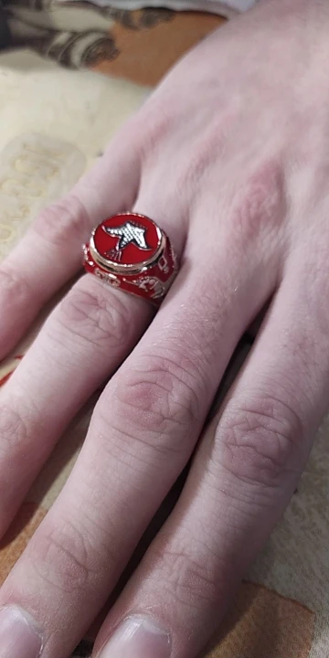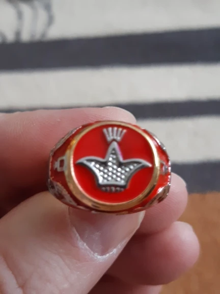 Изысканное кольцо в стиле короля Артуро. Это очень эксклюзивно по дизайну. Качество очень хорошее по цене. Материал-zinc, золотой цвет, серебро и красный. С большим количеством деталей. Это экстравагантно, большой и результат! Очень доволен этим кольцом. Shipping was very fast. 15 дней! Продавец отвечает на запросы. Я рекомендую этот продукт тому, кто искал что-то подобное. Вы останетесь довольны расходами!