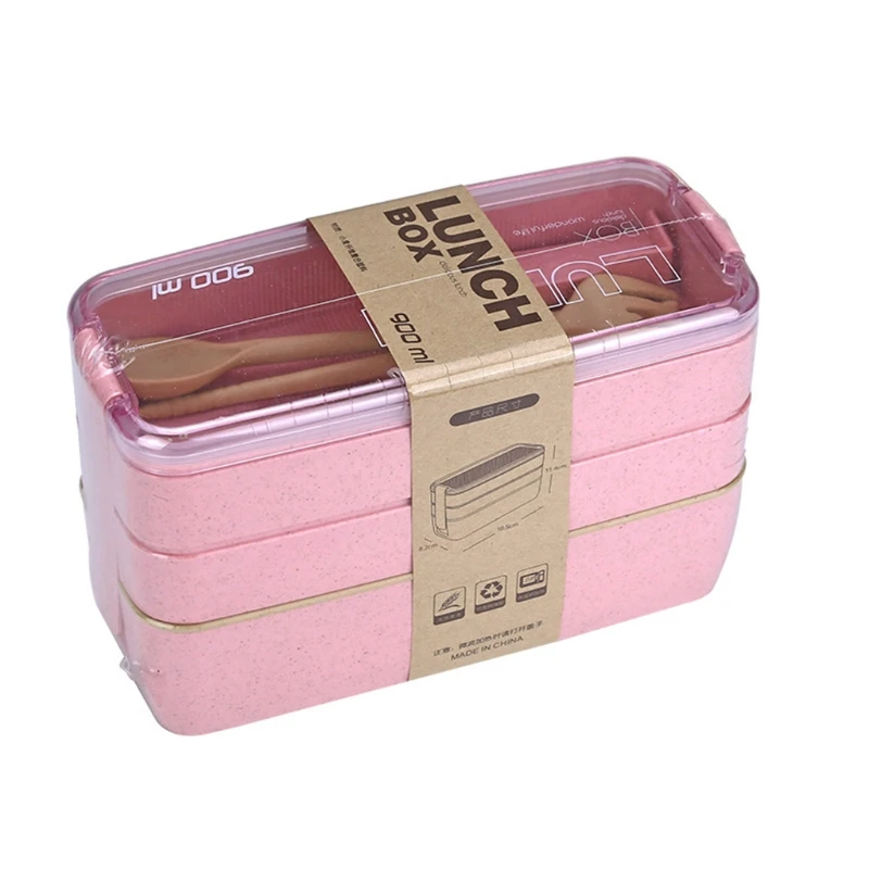 900 мл Пшеничная солома Тяжелая портативная многофункциональная 3-уровневая коробка для завтрака с тремя уровнями кухонная утварь для o ffice, работы, школы
