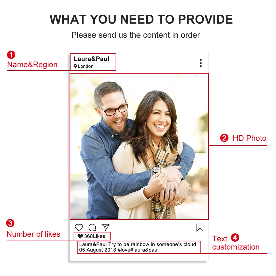 1. На пол-длины фото с чистая поверхность производится-самый лучший вариант. 2. Пожалуйста, удостоверьтесь в том, что указанный вами четкую картинку и фото более 70% портретов. 3. Пожалуйста, убедитесь, что вы используете не более 30 символов. 4. Мы снимем на заднем плане. 5. Пожалуйста, выберите любимую фотографию и отправить нам ваш заказ без колебаний, если на фото не может печатать, мы свяжемся с Вами в оперативном порядке.