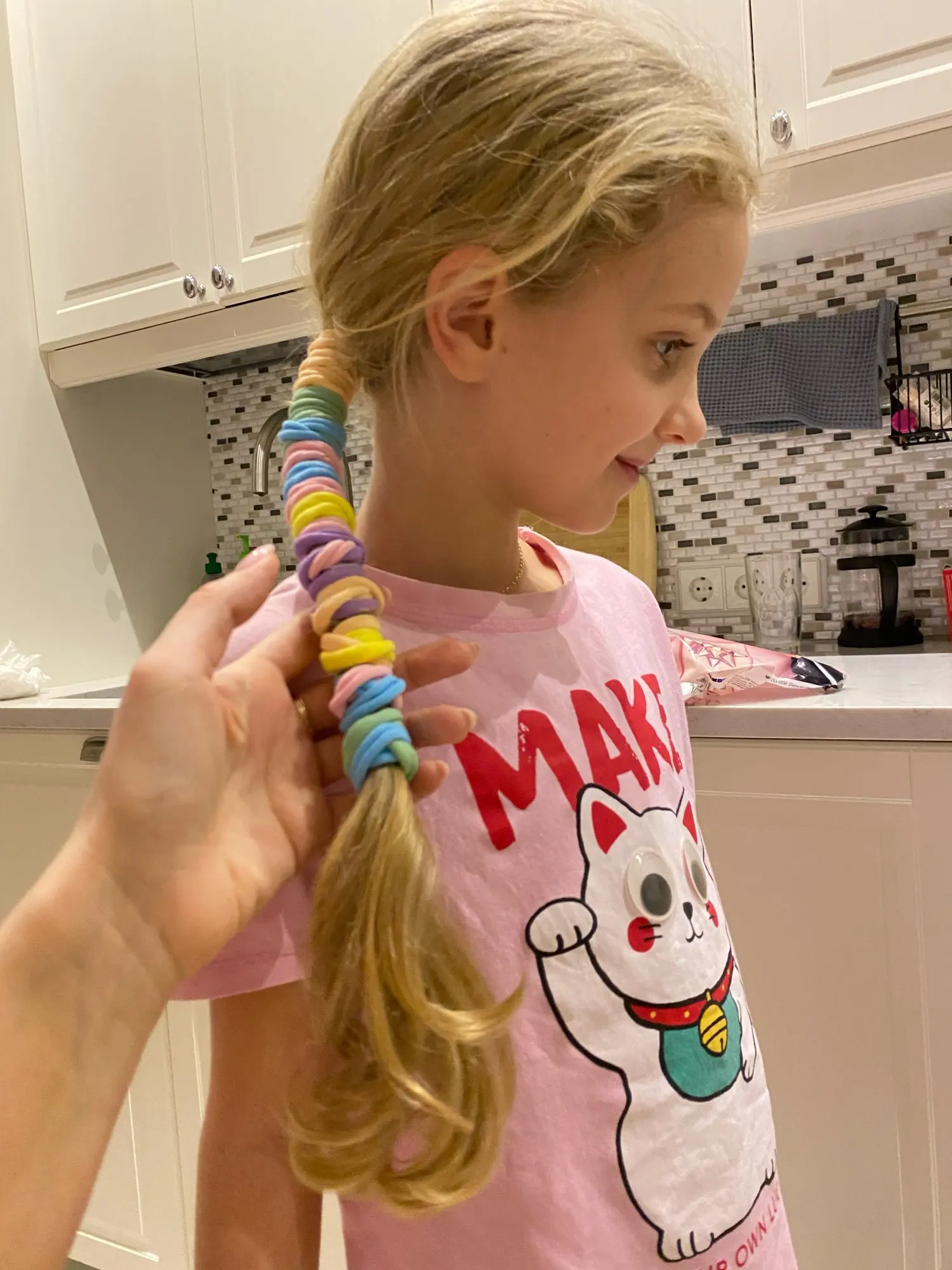 Хорошее качество резинок для волос. Моя дочь любит его, и она носит его каждый день. Планируйте покупать больше в ближайшее время.