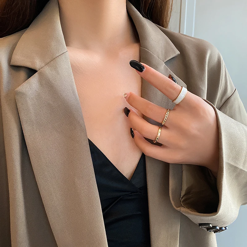 Кольца женские регулируемые AOMU, из белого и зеленого металла, с эмалью, геометрической формы, регулируемые, 3 шт.набор, в винтажном стиле, 2020