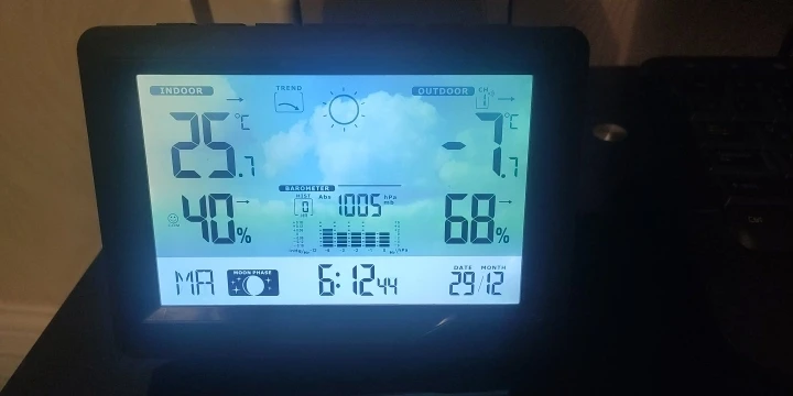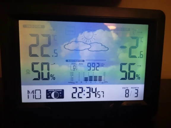 Продукт работает по всему миру, как описано. Однако сомнения в точности внутренней температуры: она отображает на 0,5 °C больше: например 20,5c, в то время как несколько других устройств показывают 20 °C Такие же сомнения в атмосферном давлении: 1010Hpa, когда официальный веб-сайт meteo указывает на 1017Hpa Тогда, по цене, я думаю, это приемлемо.