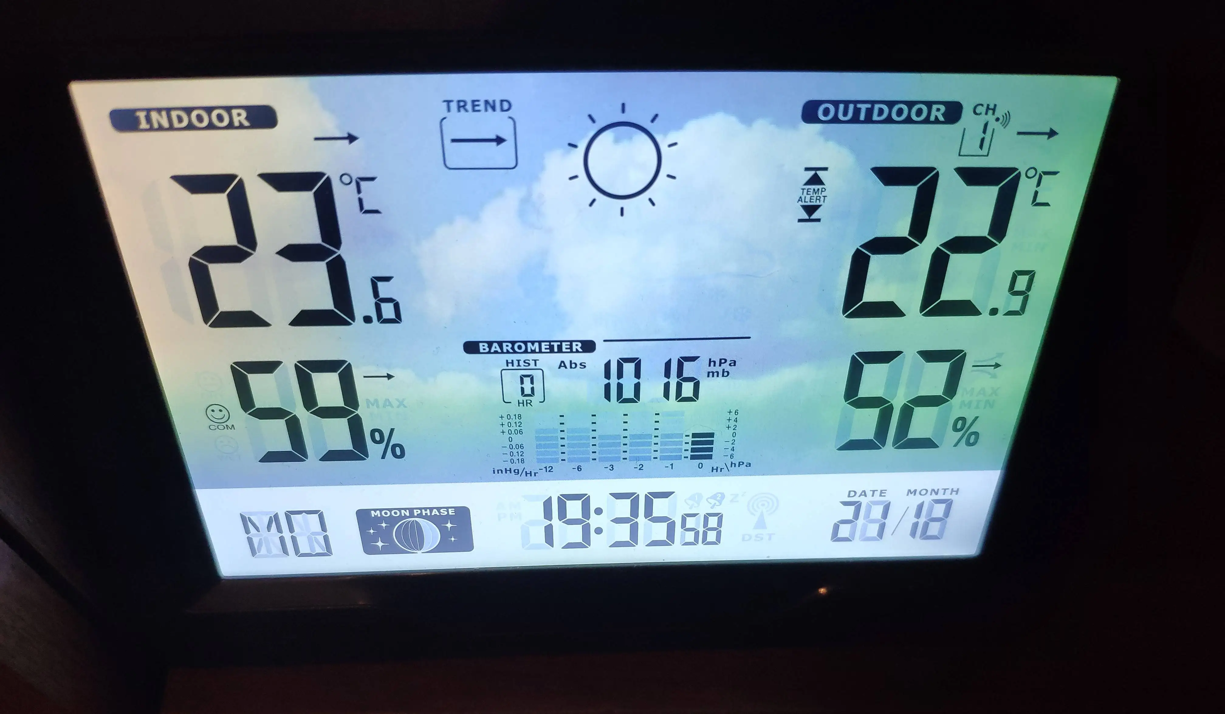Заказ занимает больше времени, чем счет. Станция варьируется в пределах 2 ° C по сравнению с другими, которые у меня есть. Или отметьте это неправильно, или отметьте остальные, но остальные соответствуют мне. При измерении влаги происходит то же самое. Самое главное, как плохо выглядит. Если нет, вы не можете увидеть, что на экране. С аккумуляторами экран сверху выключается, вы должны дать кнопку подсветки, чтобы включить экран, и вы уже можете увидеть, что говорит, когда вы смотрите на правый угол или наклон. Если вы подключите кабель, если он всегда горит, вы можете регулировать интенсивность света. Проблема в том, что вам нужна штепсельная вилка рядом, и я не знаю, что будет потреблять всегда подключенная станция. Если бы я все это знаю, я бы не купил. Если я хочу его вернуть, мне придется взять на себя расходы. Я держу его в вашей коробке, по крайней мере, это не занимает место на полке.