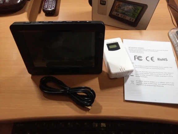 Описание товара соответствует фактическому внешнему виду и дизайну станции. Доставка состоит из следующих элементов: кабель питания, станция, беспроводной датчик, который можно увидеть на фотографиях. По моему мнению, все было надежно закреплено перед отправкой. Важно отметить, что станция и датчик работают хорошо, и показания соответствуют температуре, проверенной с помощью другого датчика.
