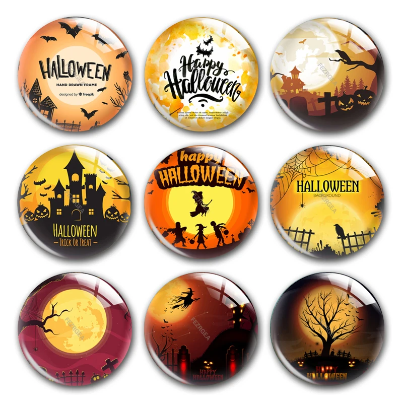 Ручная работа, Хэллоуин, вечеринка, ночная ведьма, круглые фото, Стеклянные Кабошоны, демонстрация плоской спины, DIY колье, изготовление ювелирных изделий
