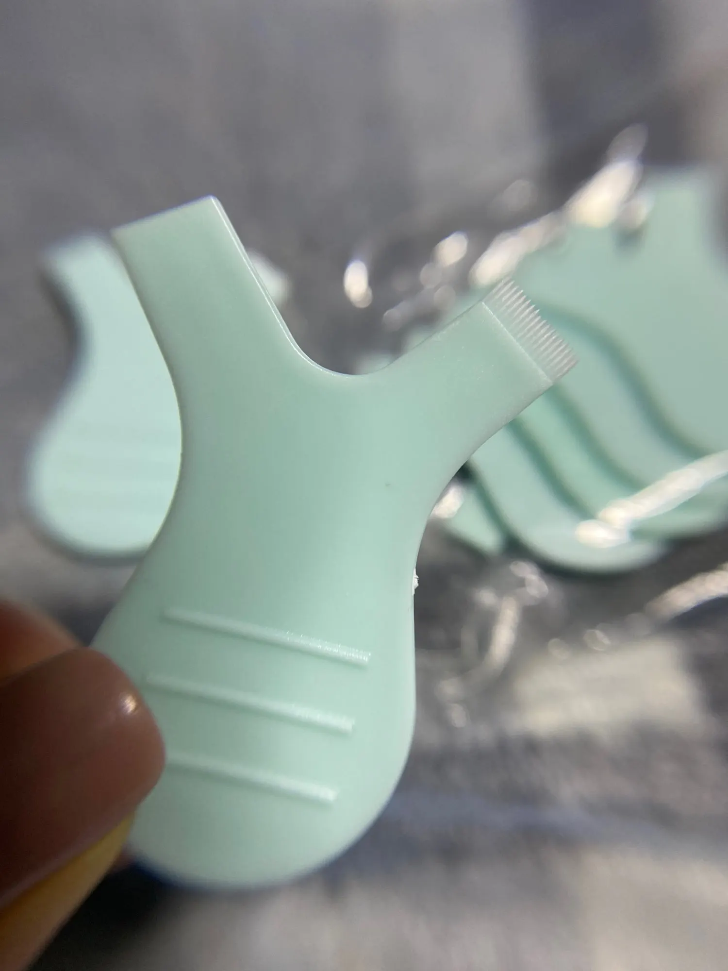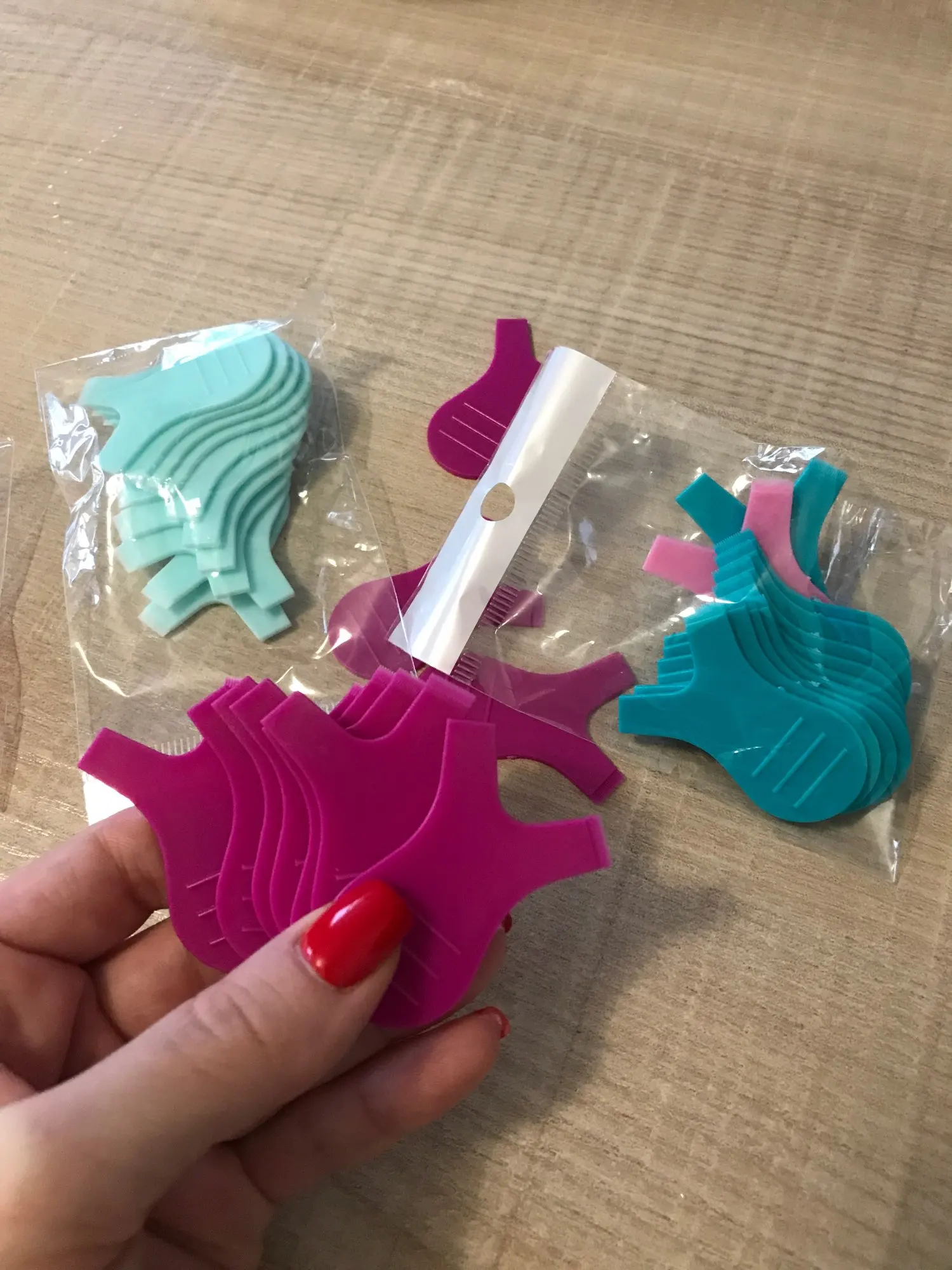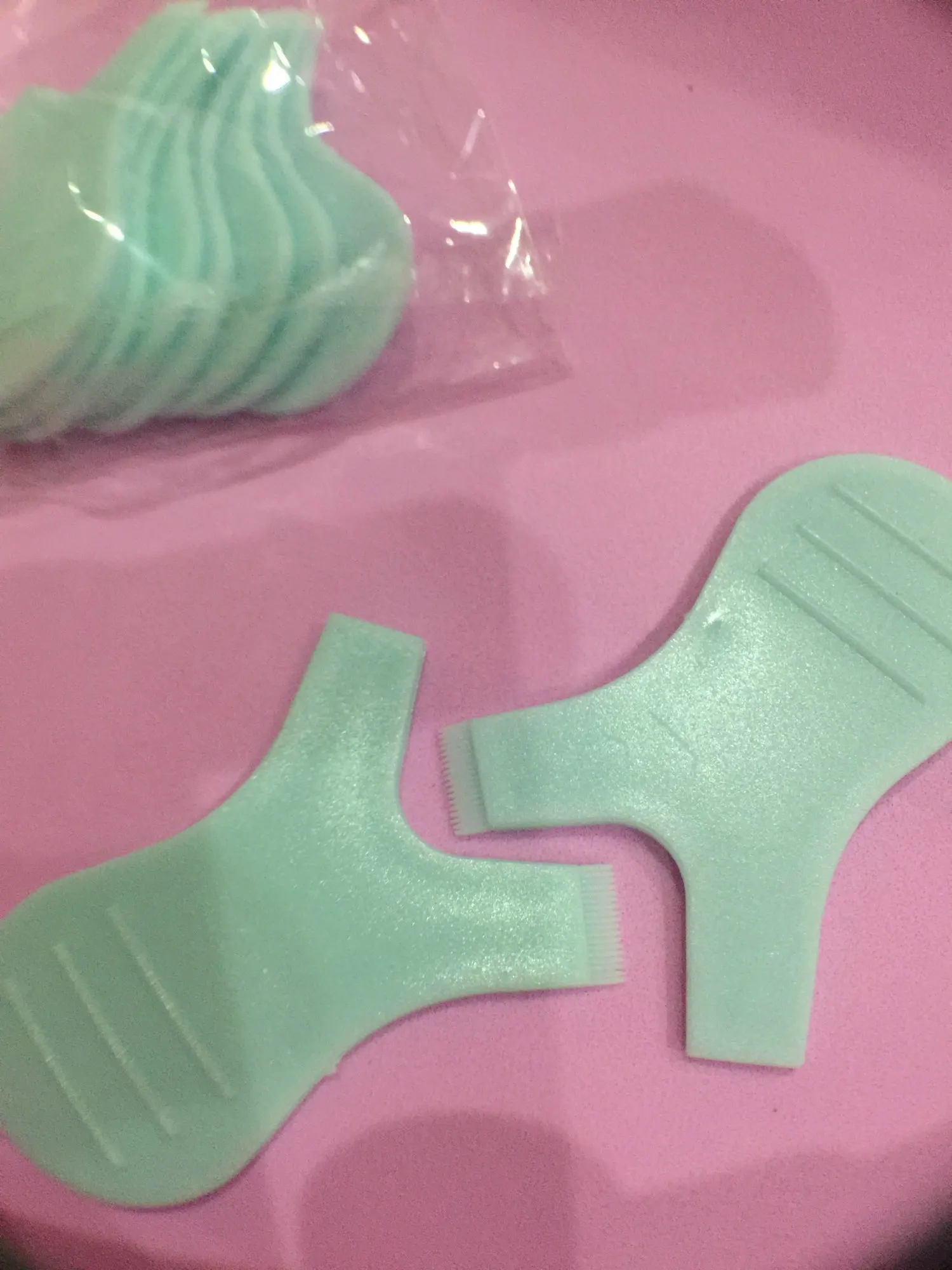 Аппликаторы красивые, зубчики прочные. Есть, конечно, места с необработанным пластиком, но это некритично, на работу не влияет. Отлично подходят по цвету под логотип вельвета. Доставка месяц всвязи с новогодними праздниками. Рекомендую.