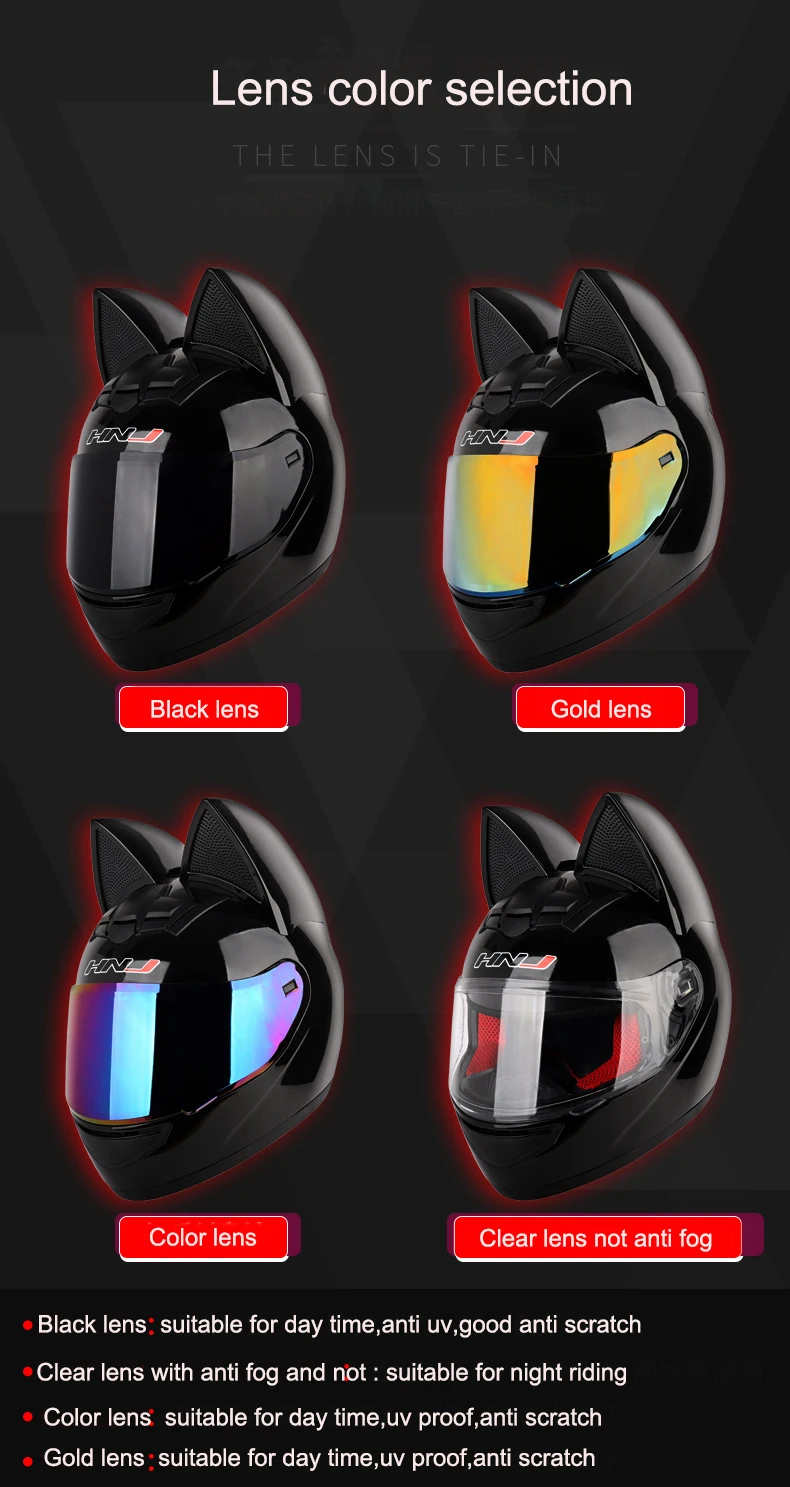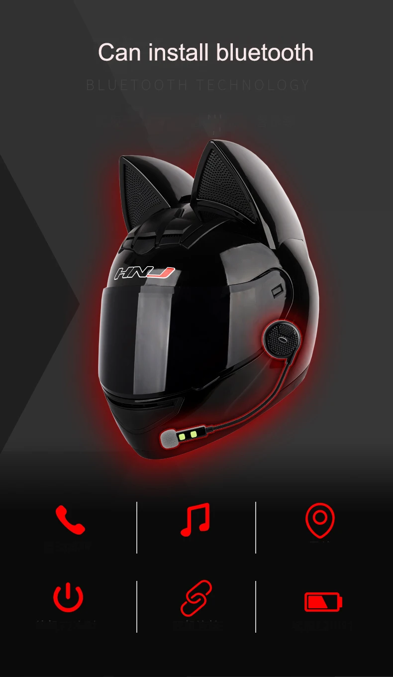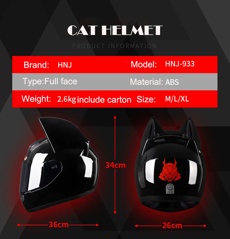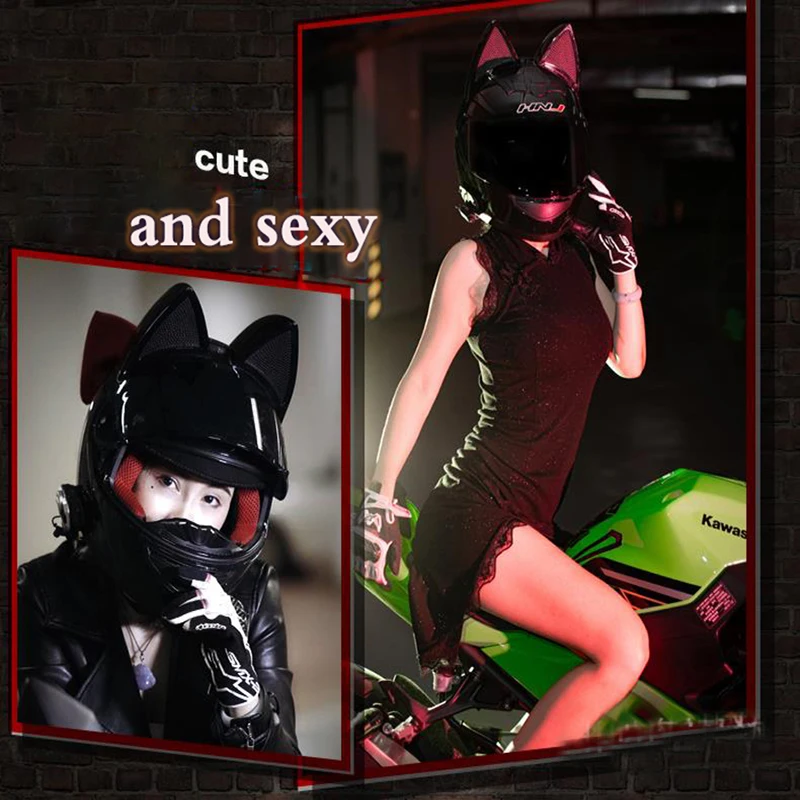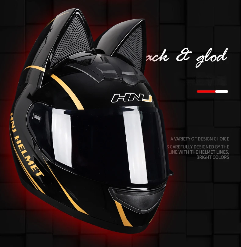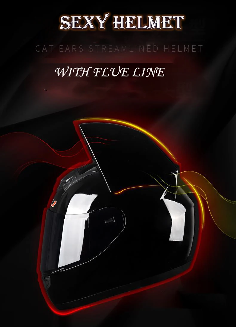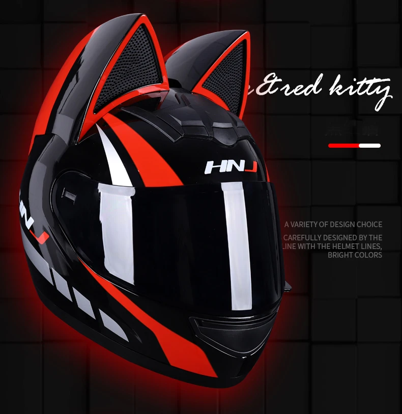 Мотоциклетный шлем HNJ с кошачьими ушками, для мужчин и женщин, мотоциклетный гоночный шлем с полным покрытием, защитный шлем
