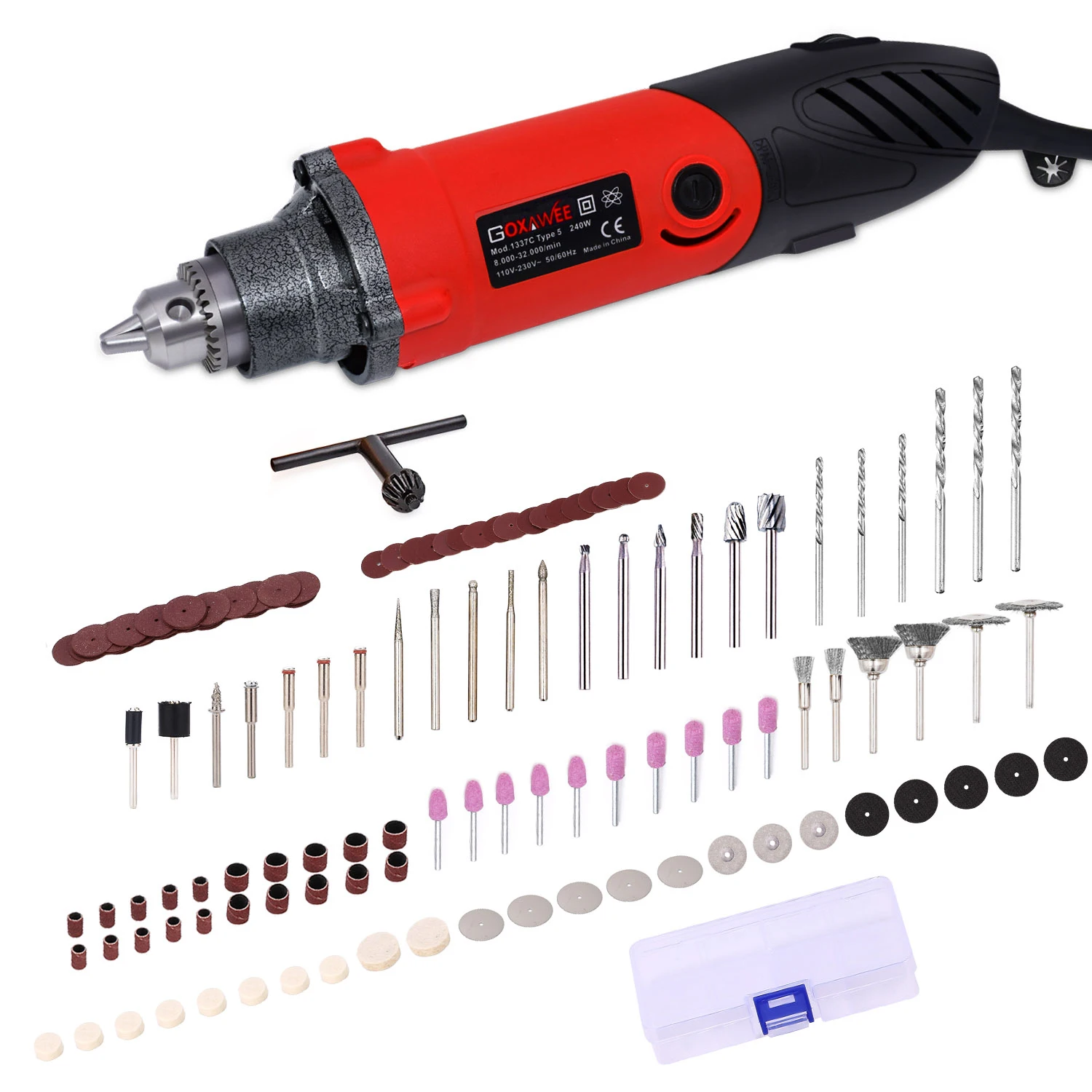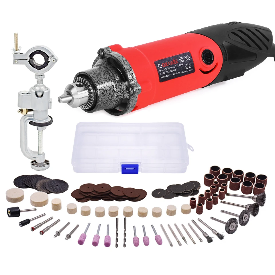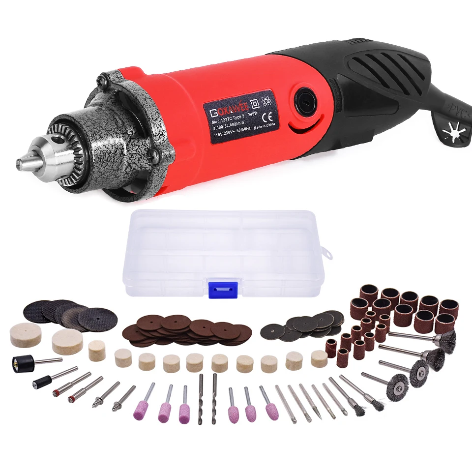 Электрическая штамповочная машина 240 Вт6-ступенчатая переменная скорость: скорость меняется от 8000 до 32000 об/мин для различных ситуаций для адаптации к цели.Использование зажима ключа: высокая стабильность и легкость замены аксессуаров без использования собирает и принимает аксессуары от 0,5 мм до 6,0 мм хвостовик.