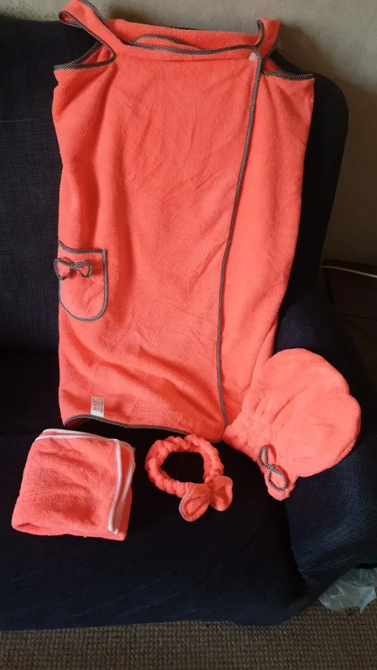 Отличное полотенце, на размер 54 ОГ 110 закрывает все, застегиваются на 2 кнопочки, брала для бассейна, очень удобно, пришло очень быстро