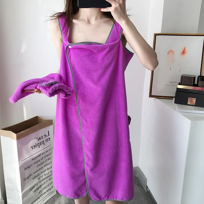 Very soft material not like a towel material . This is good to have on while putting on makeup or drying your hair. The color is very pink not magenta . I tryed it on and it is like the pictures. Overall I am pleased with this purchase .