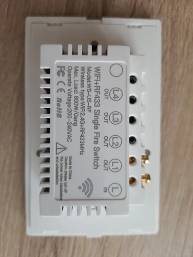 Будьте осторожны, чтобы не поменять L1 и L2, иначе поведение переключателя странное. Инструкции хорошо упоминают, что вы должны поставить конденсатор на L1 Переключатель работает хорошо и хорошо вписывается в коробку с разрывом. Управляется с туей и алексой без проблем.