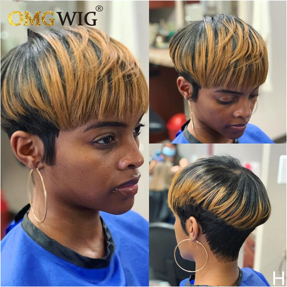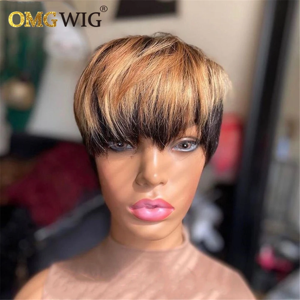 Парик омбре с вырезанными волосами, цветные, без шнуровки, передние парики из человеческих волос, предварительно выщипанные короткие волосы, парики боб, бразильские волосы без повреждений, медовая блондинка, парик 1B27