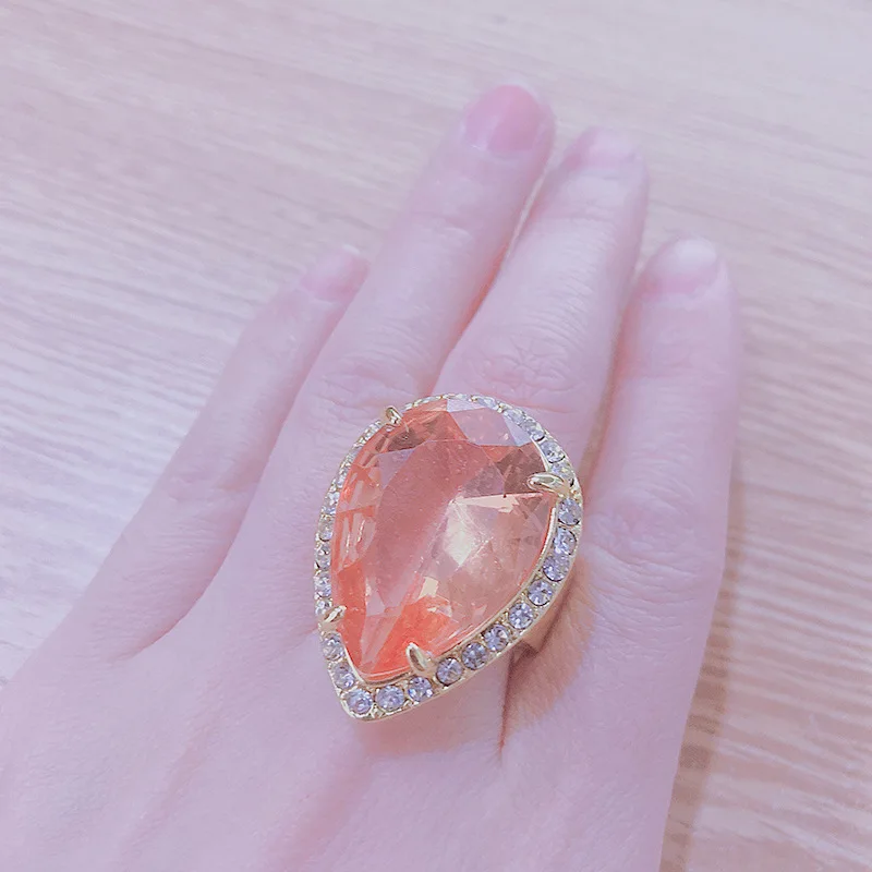 Кольцо женское розовое с цирконом в форме капли воды, большие ангел...
