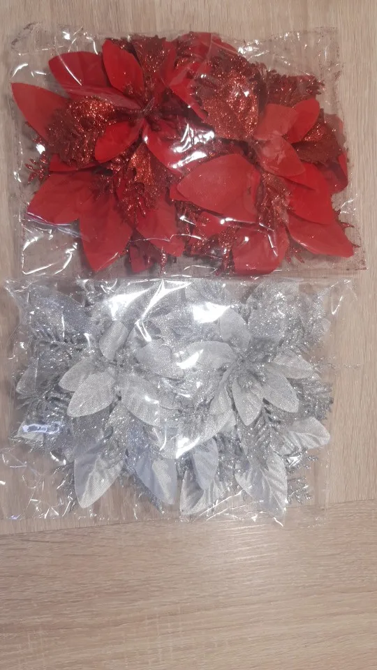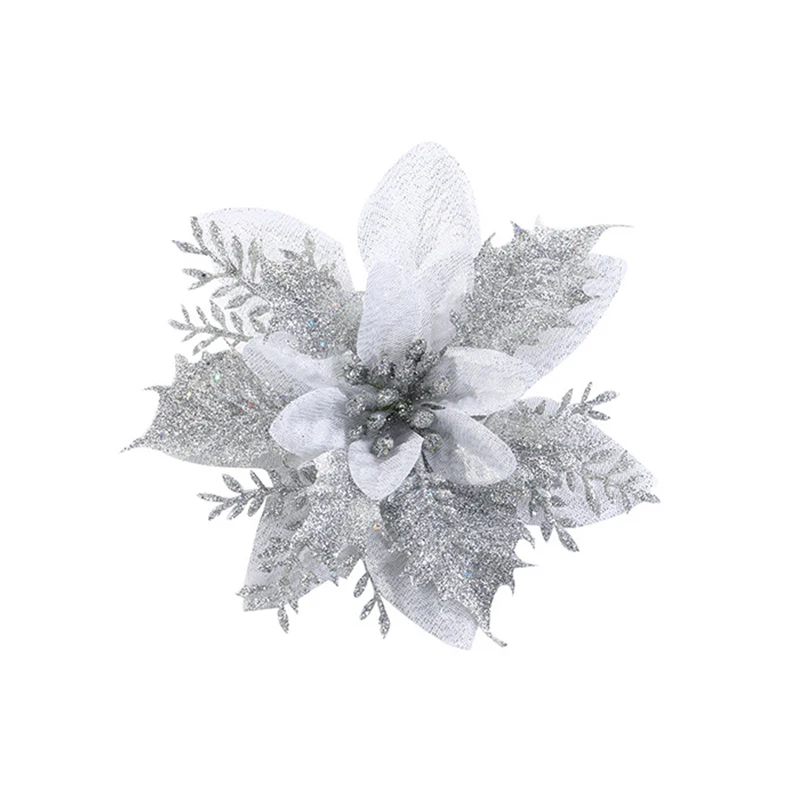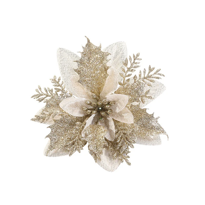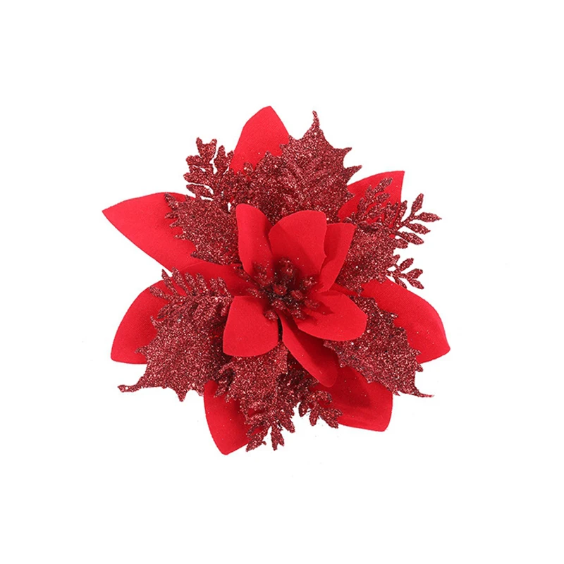 Искусственные Рождественские цветы, блестящие Искусственные цветы 13 см, украшения для рождественской елки для дома, рождественские украшения, подарок, 5 шт.