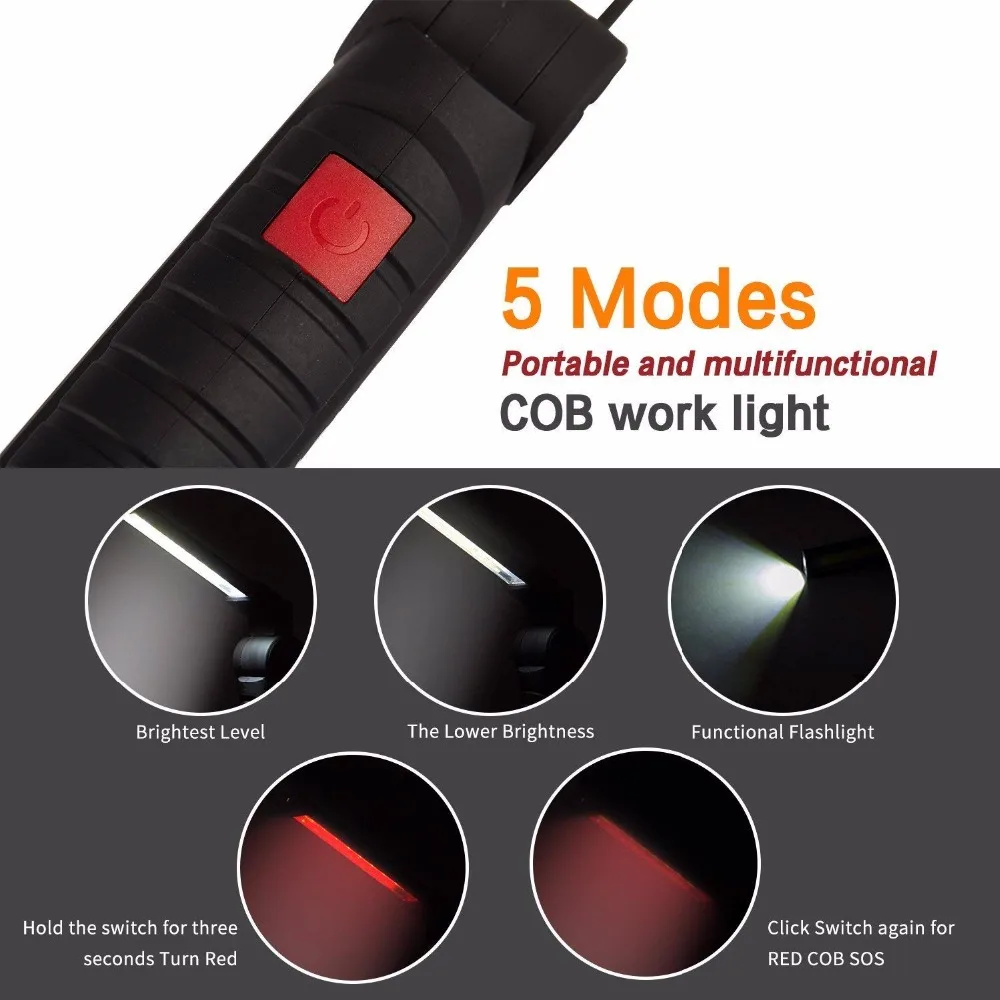 Перезаряжаемый светодиодный рабочий светильник, фонарик с магнитом и крючком, водонепроницаемый, 5 светильник МОВ освещения, подходит для ночной работы и т. д.